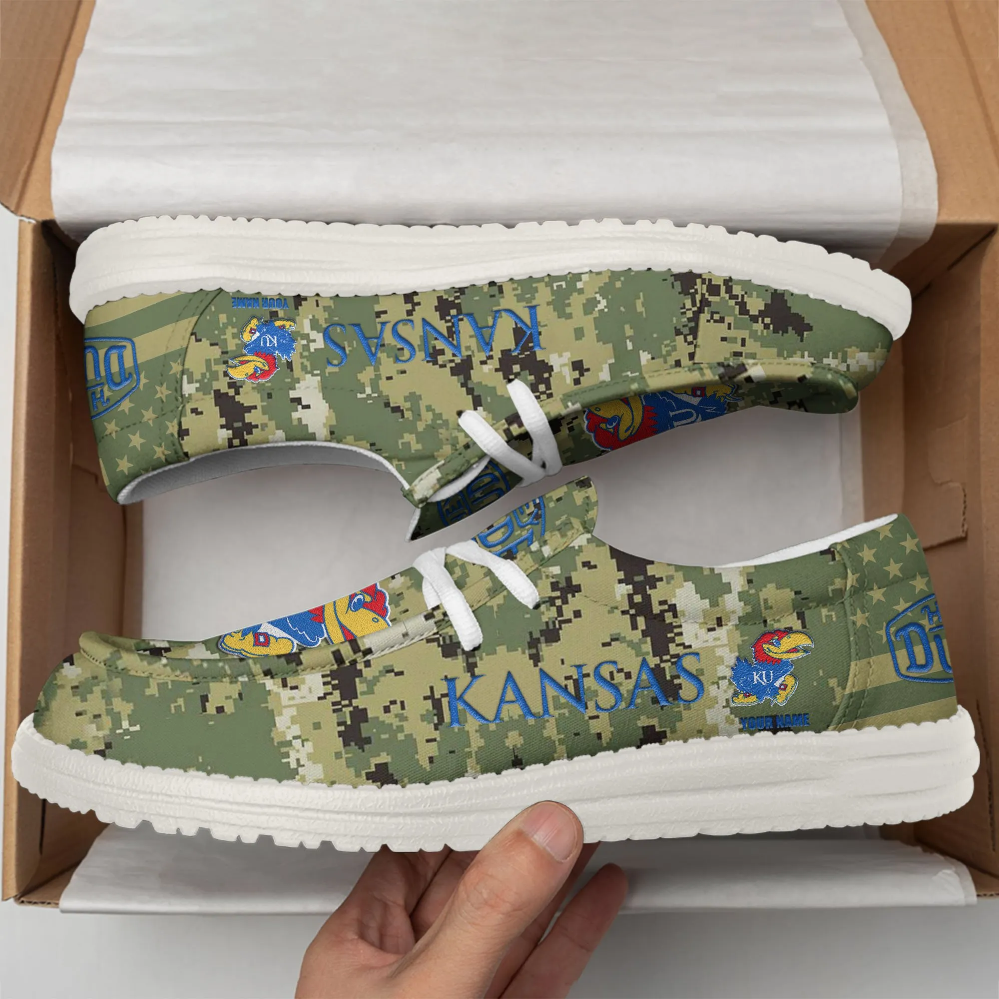 Kansas Jayhawks 3D Print Dude Shoes Camo Green For Men Women