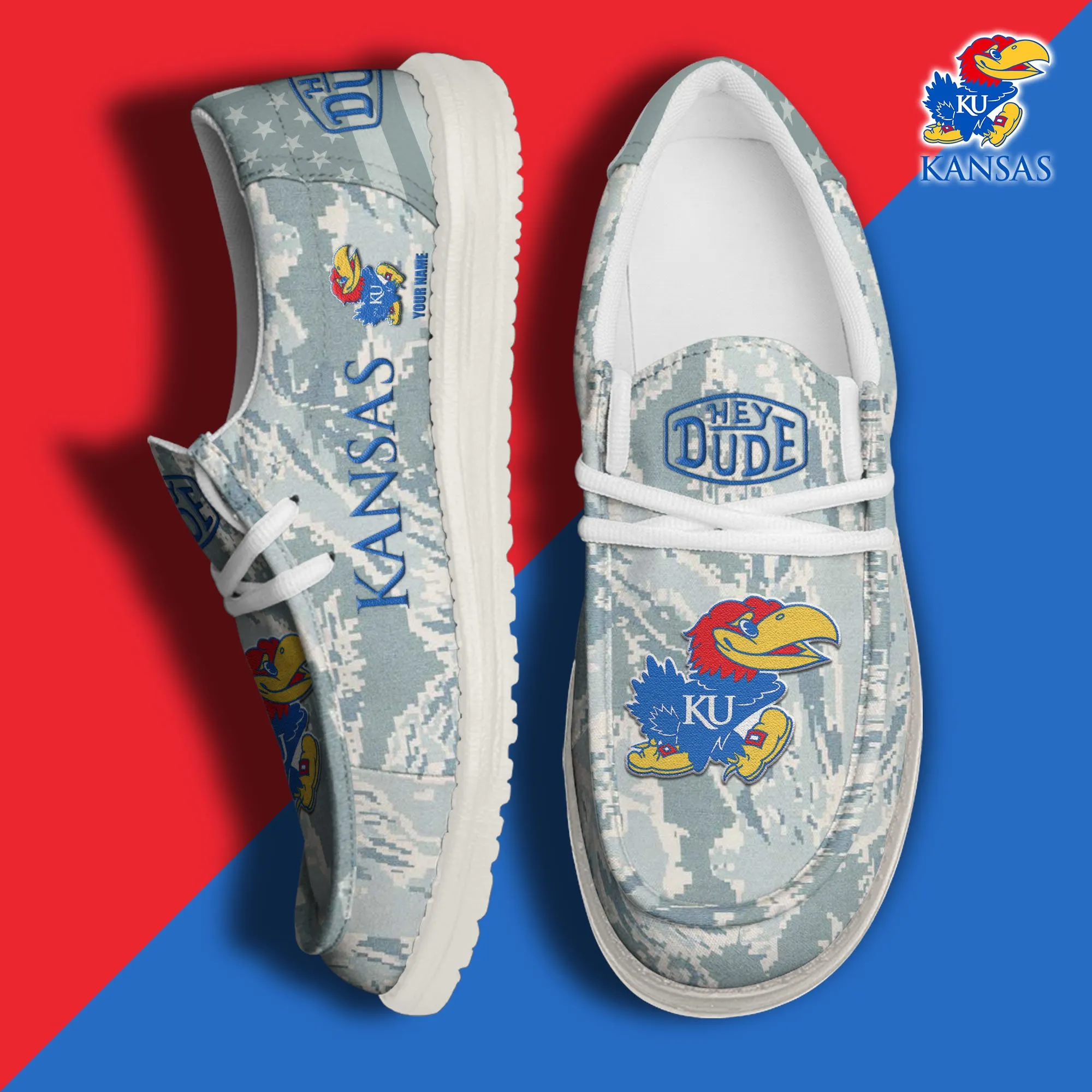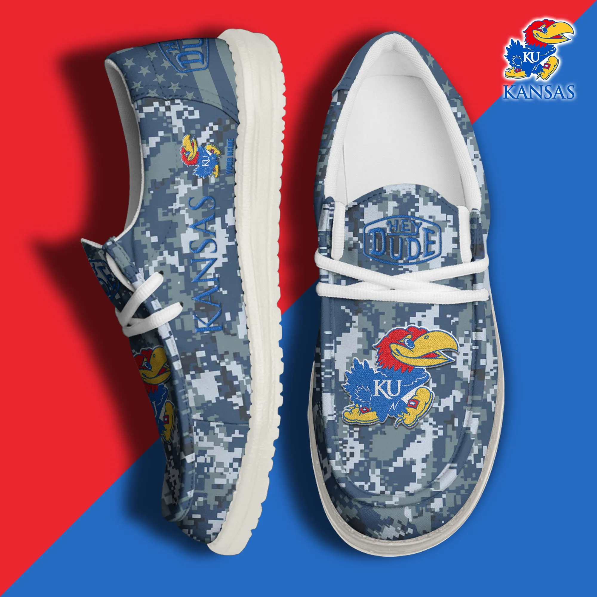Kansas Jayhawks 3D Print Dude Shoes Camo Blue Grey For Men Women