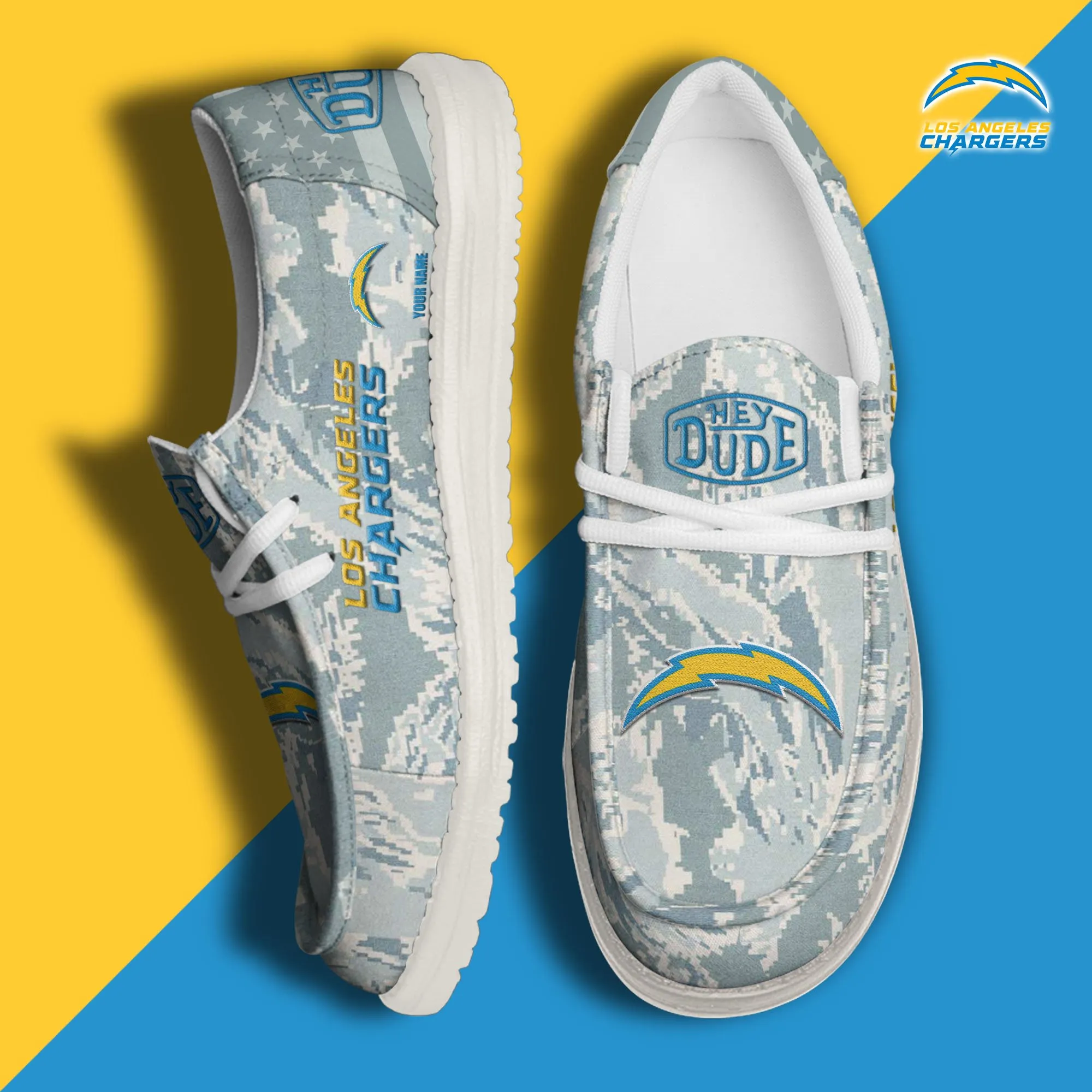Los Angeles Chargers 3D Print Dude Shoes Camo Blue Grey For Men Women
