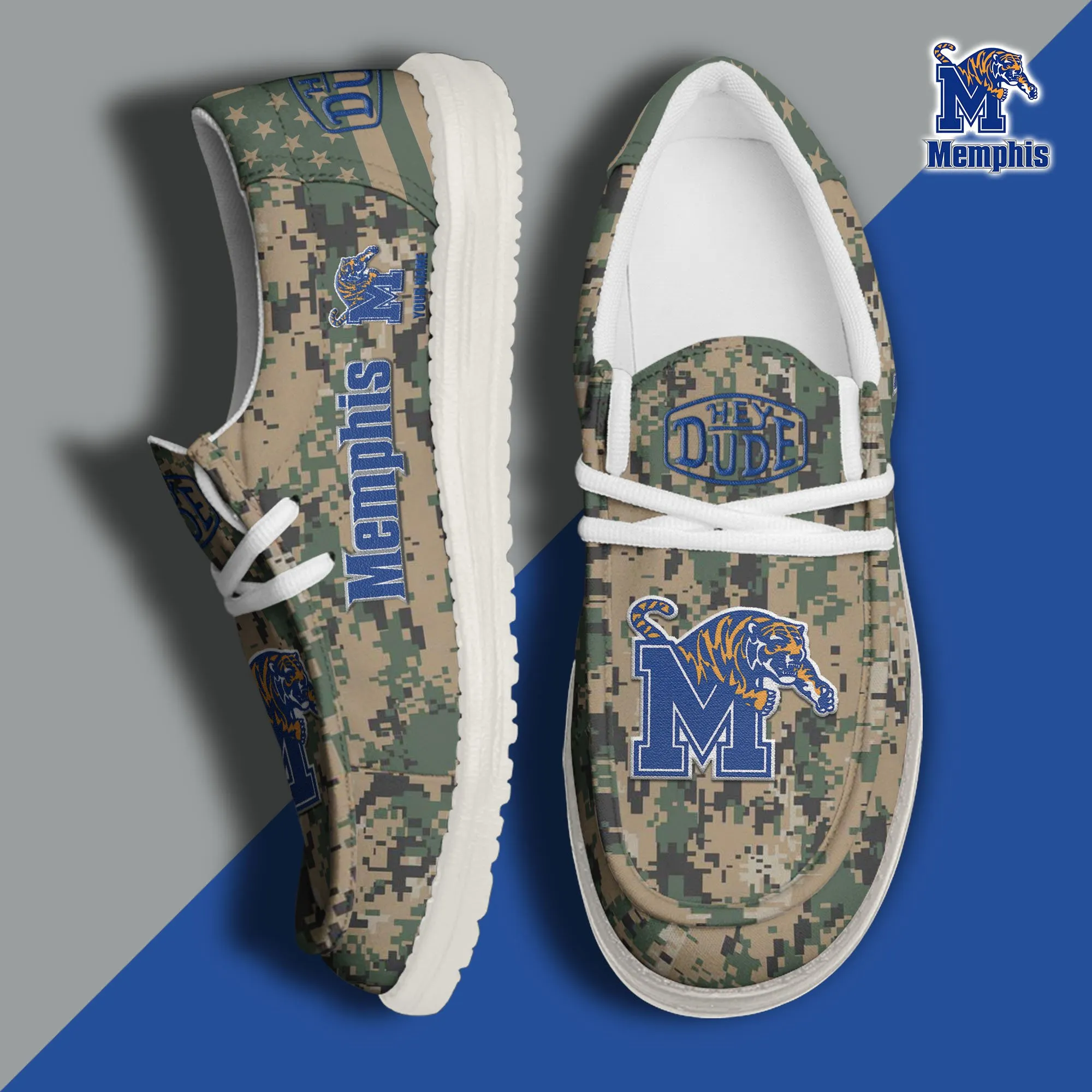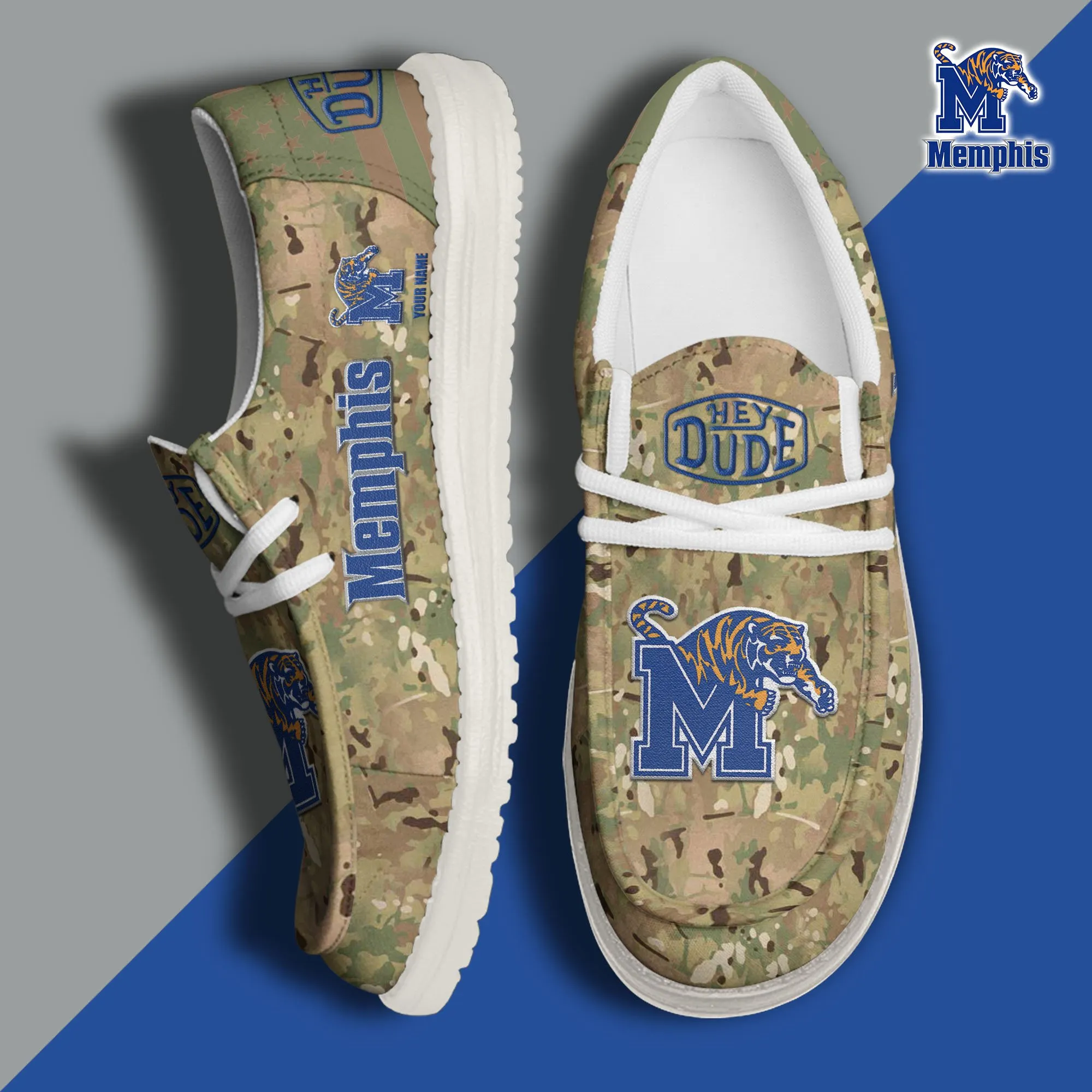 Memphis Tigers 3D Print Dude Shoes Camo Green For Men Women