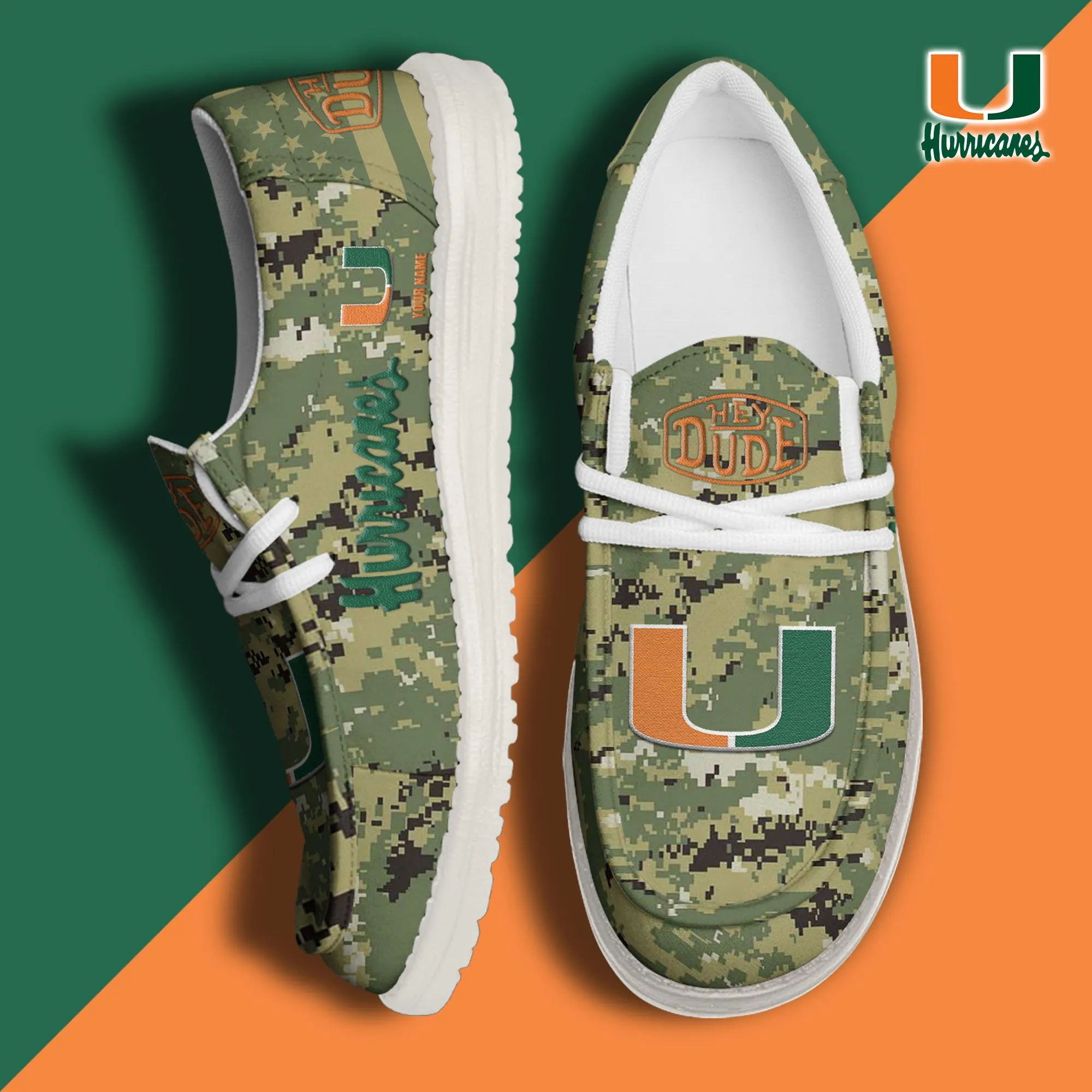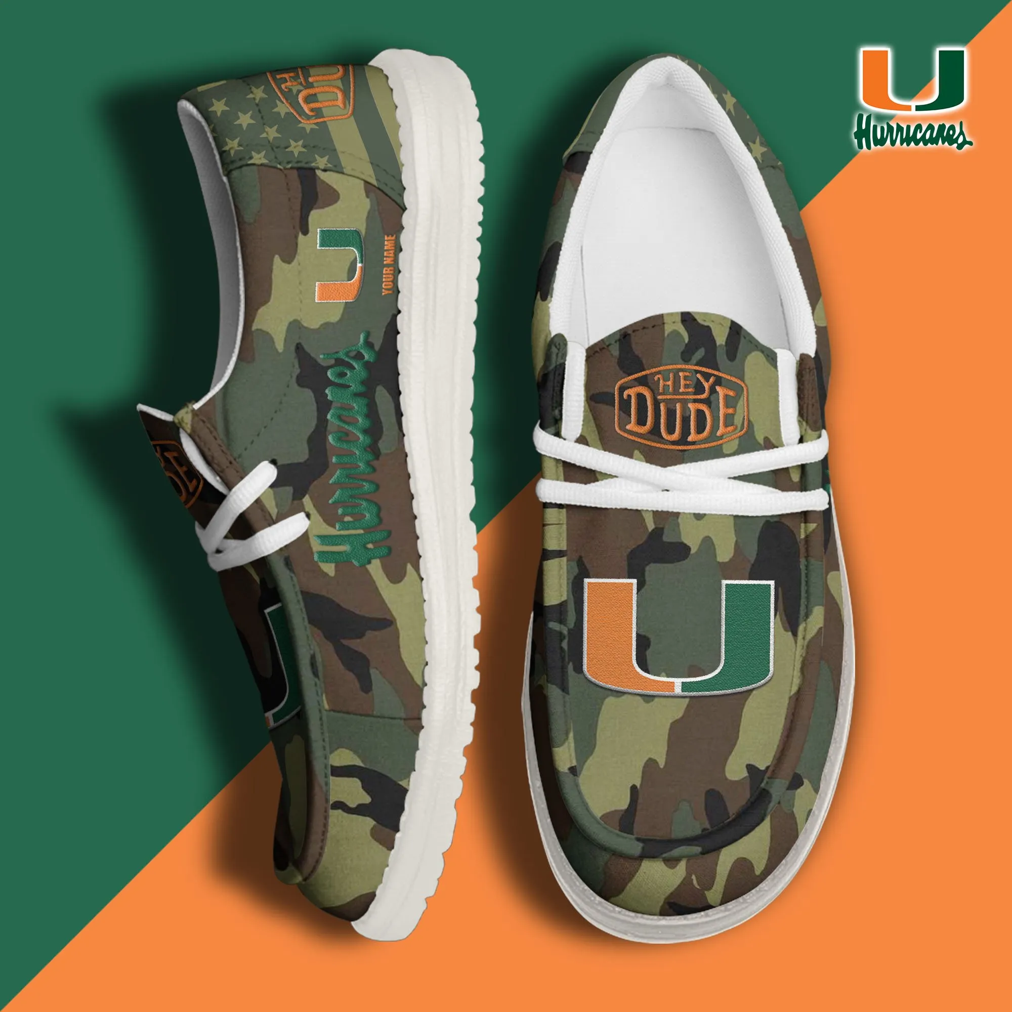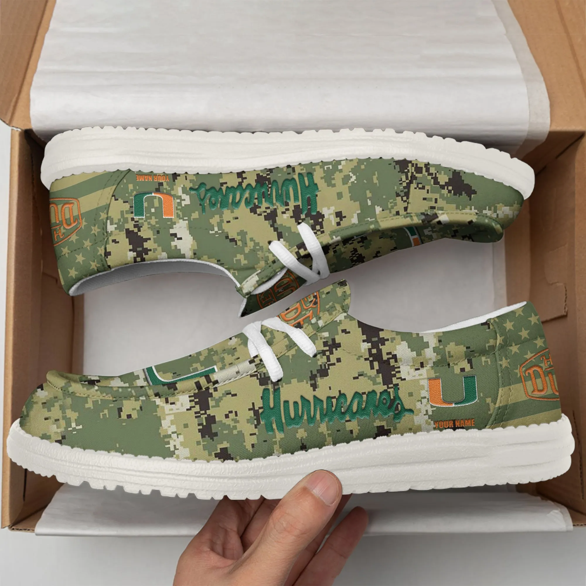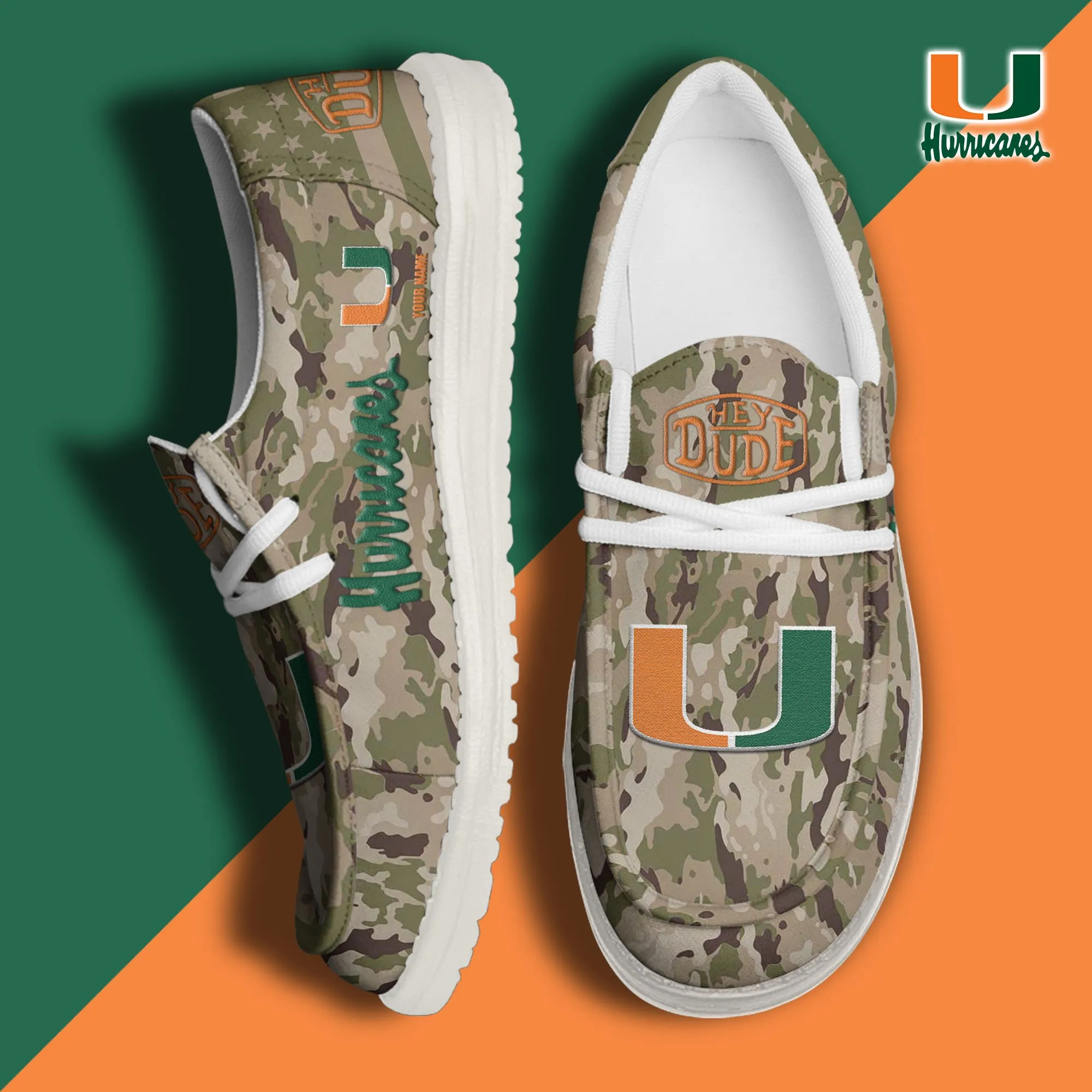 Miami Hurricanes 3D Print Dude Shoes Camo Green Best Gift For Sport Fan