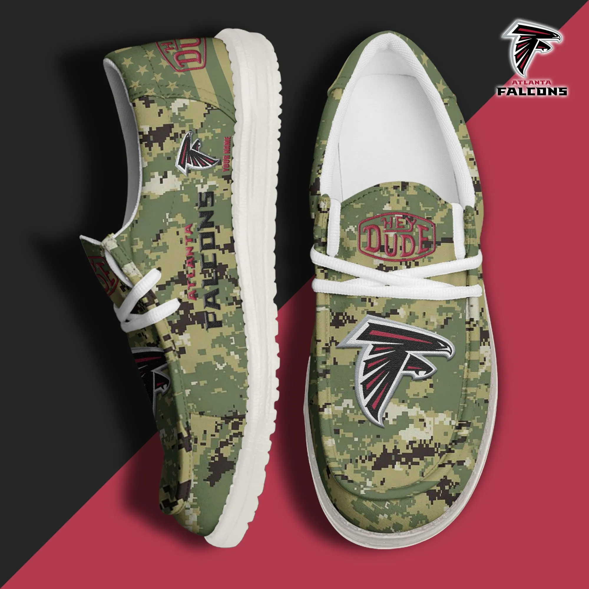 Atlanta Falcons 3D Print Dude Shoes Camo Green Best Gift For Sport Fan