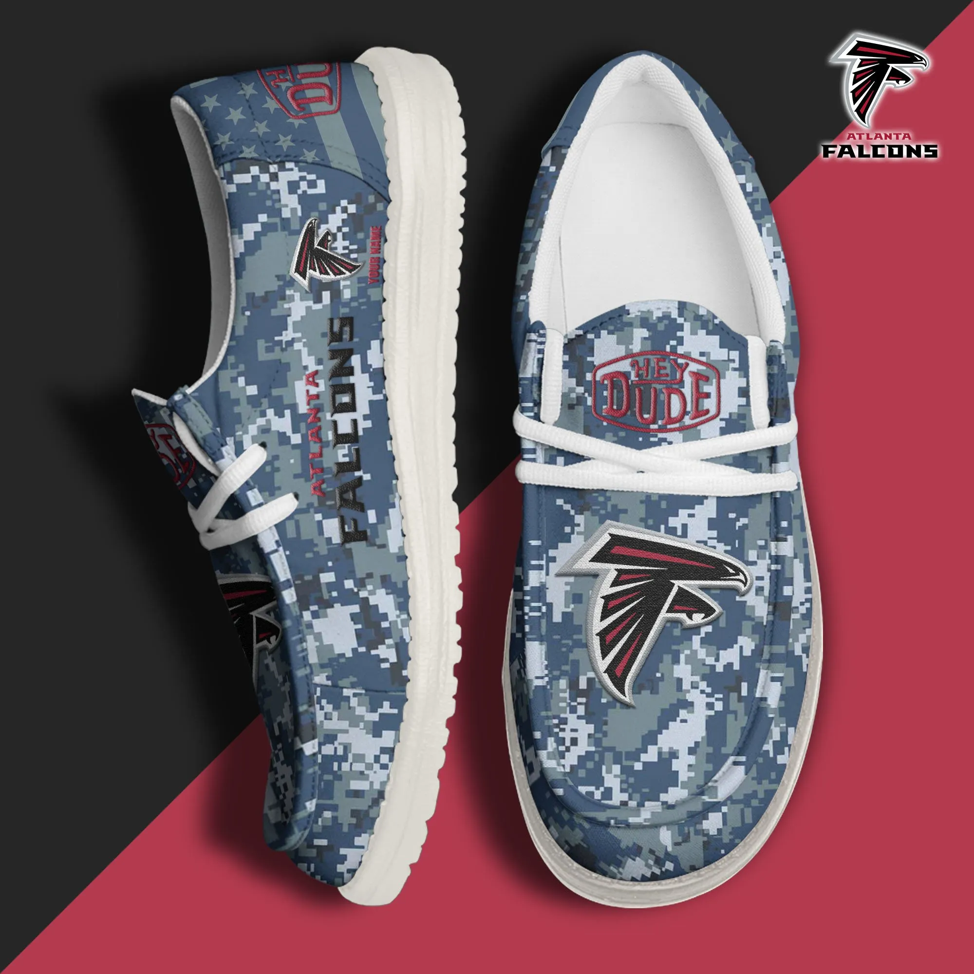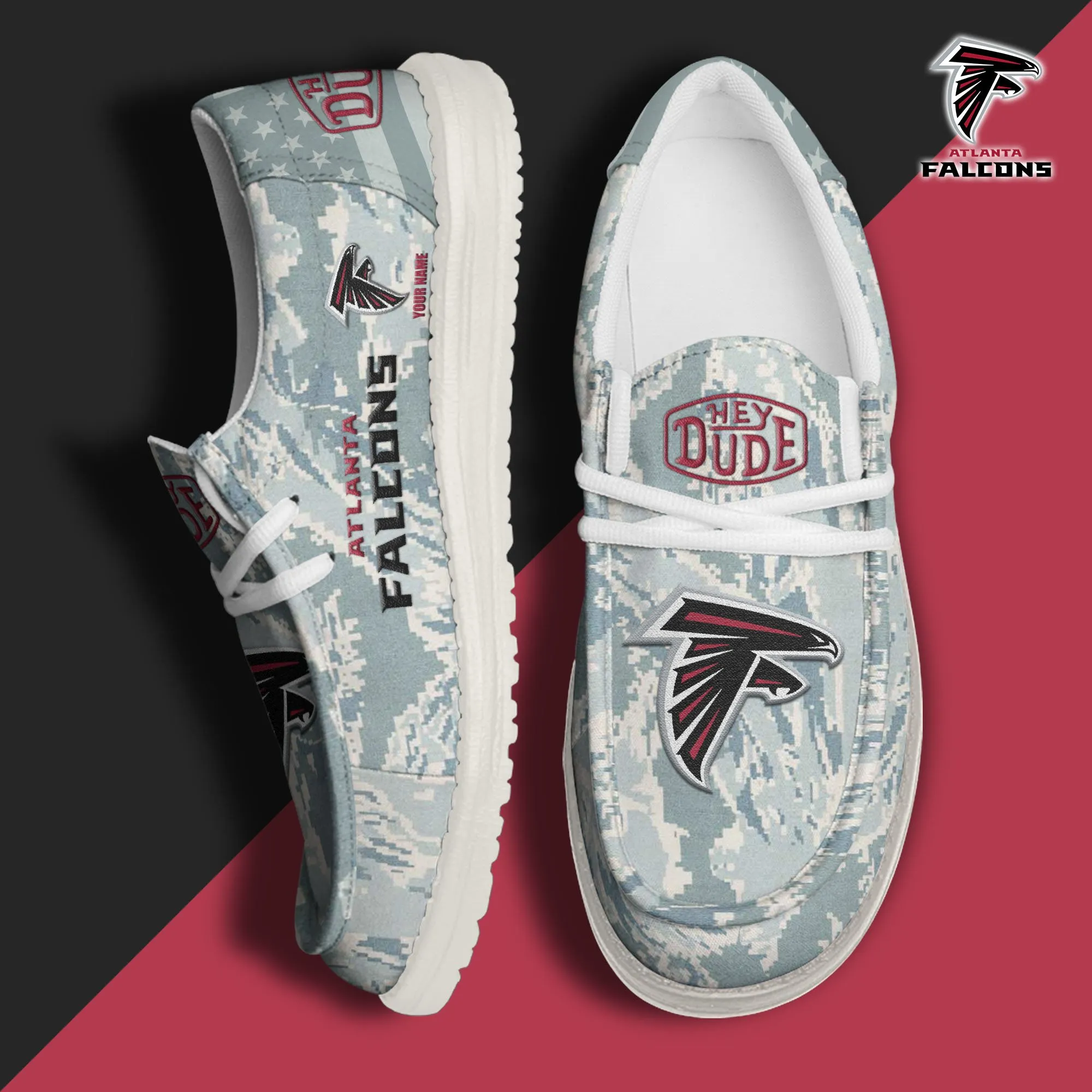 Atlanta Falcons 3D Print Dude Shoes Camo Grey Blue For Men Women