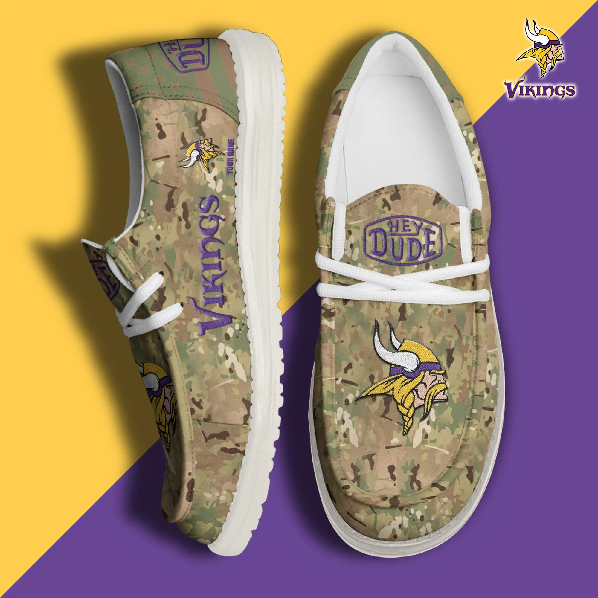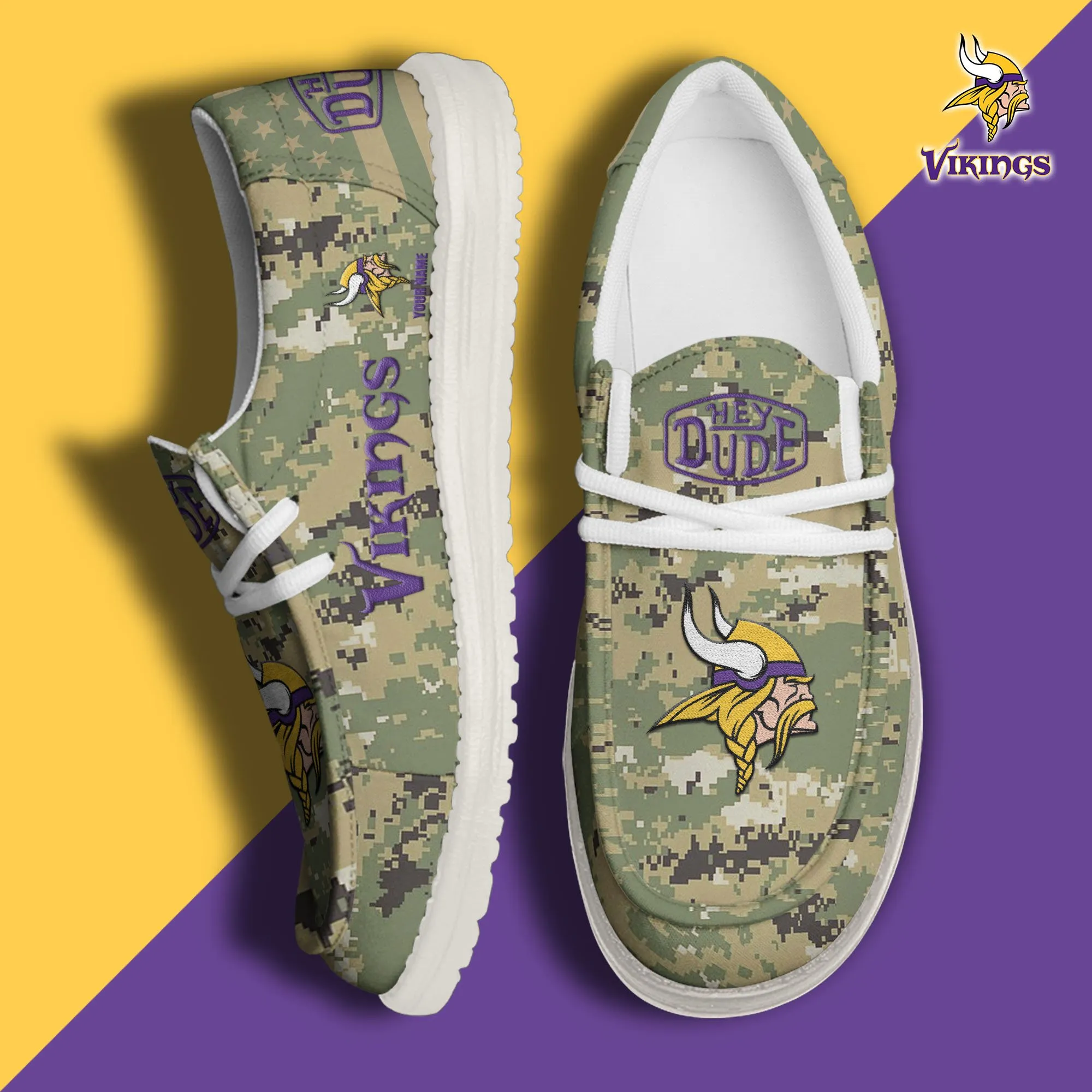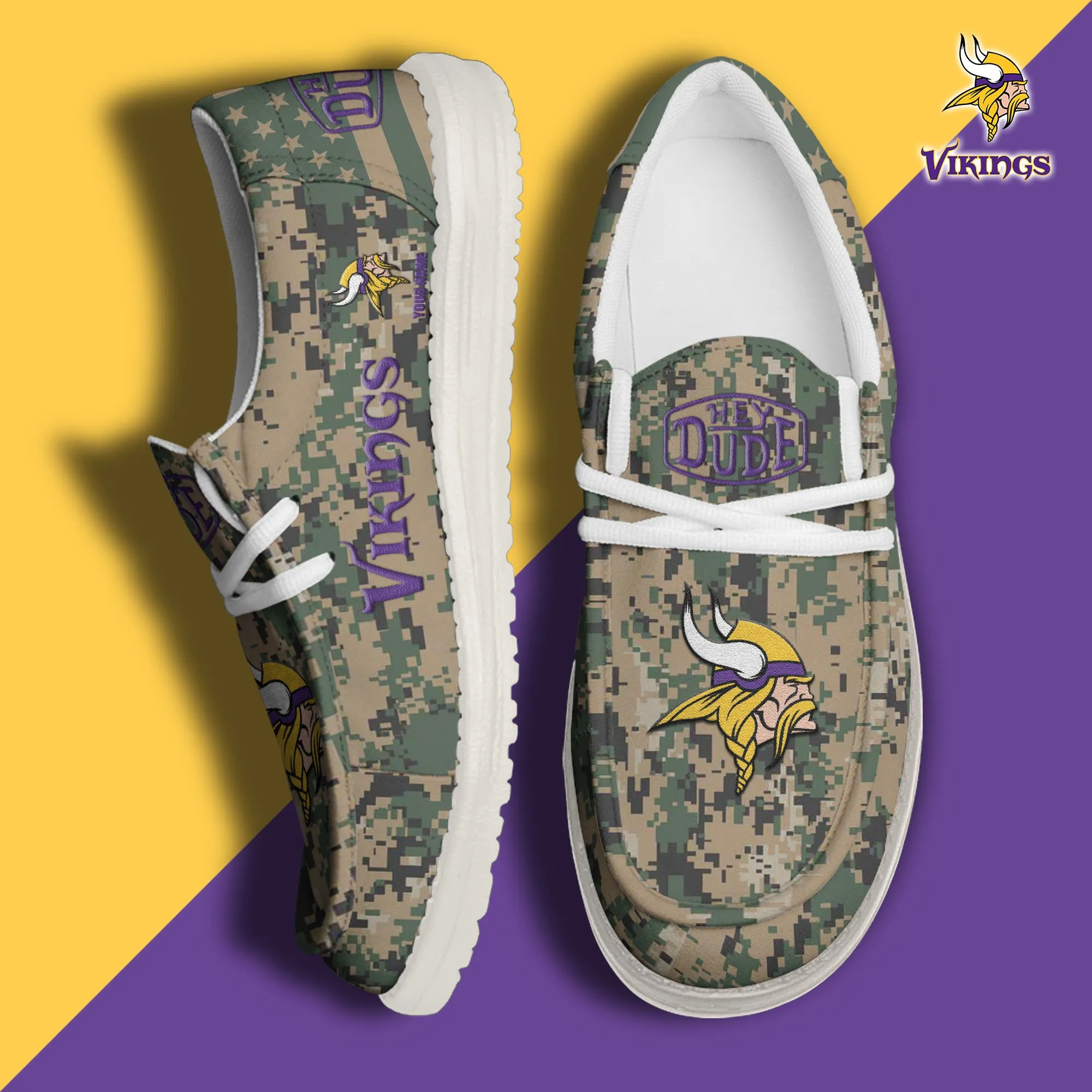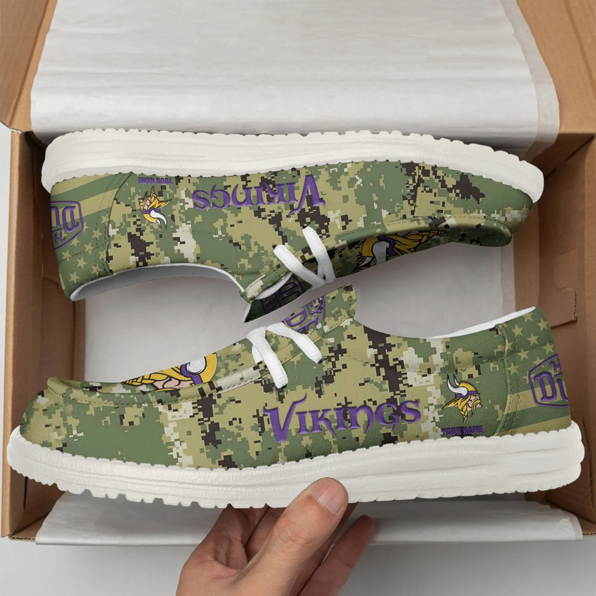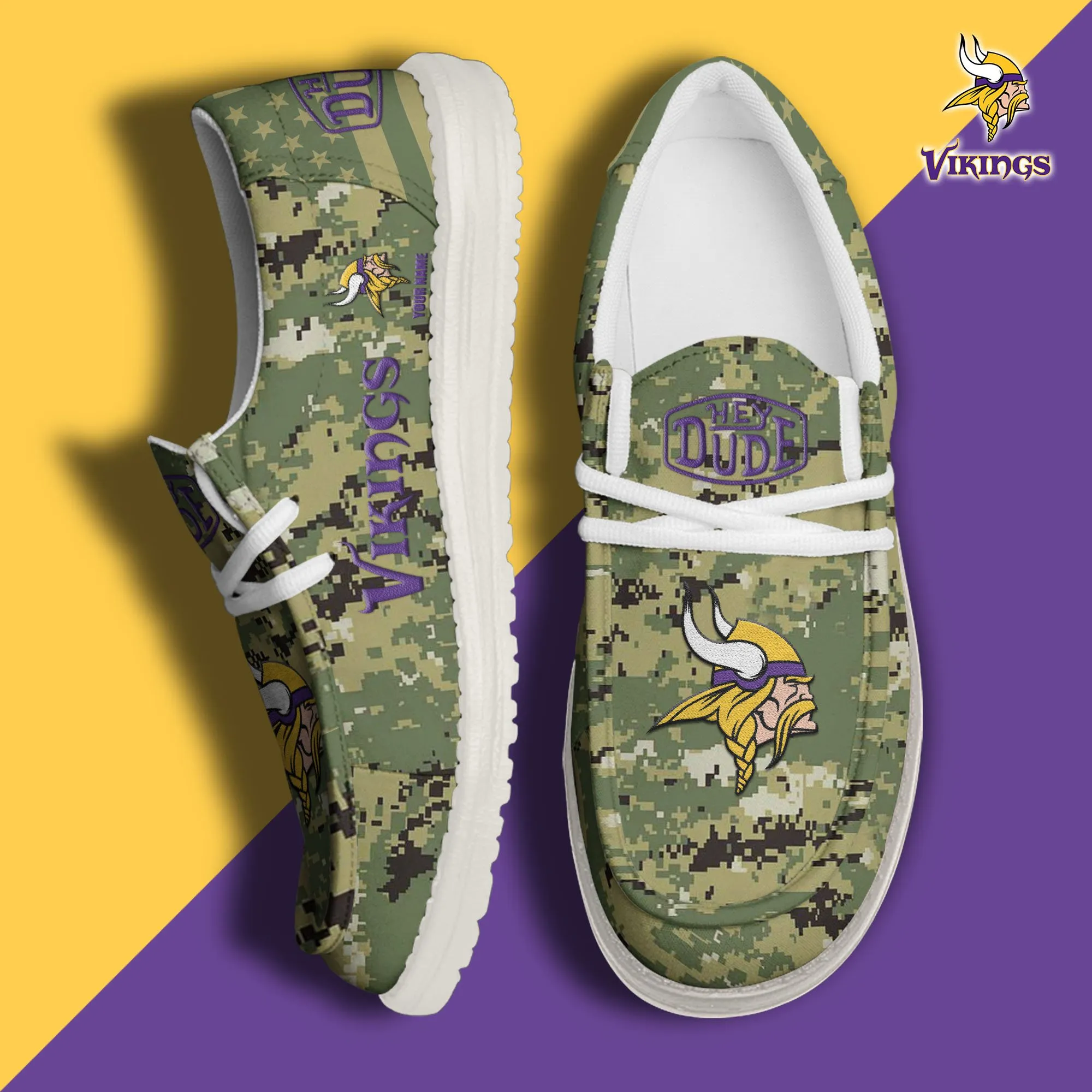 Minnesota Vikings 3D Print Dude Shoes Camo Green For Men Women