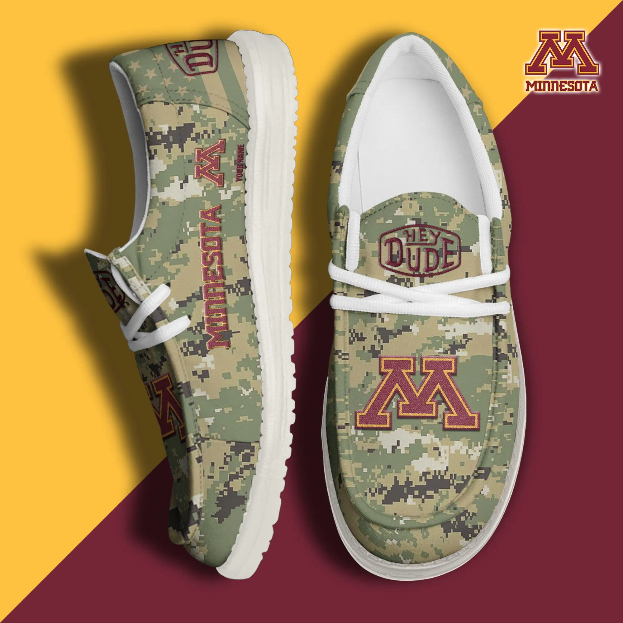 Minnesota Golden Gophers 3D Print Dude Shoes Ranger Green Color For Men Women