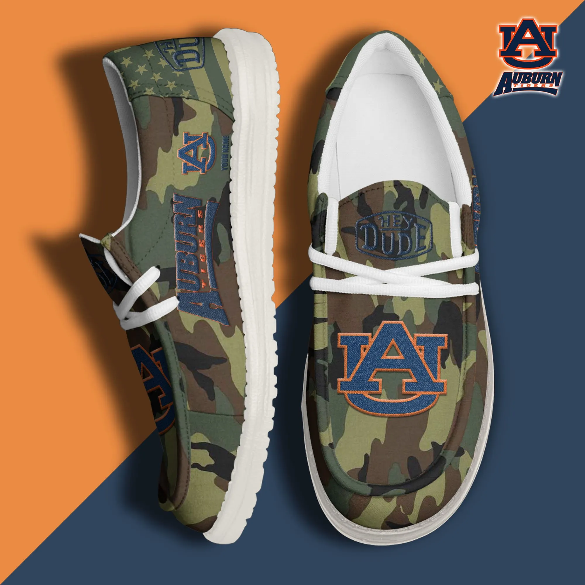 Auburn Tigers 3D Print Dude Shoes Camo Blue Grey For Men Women