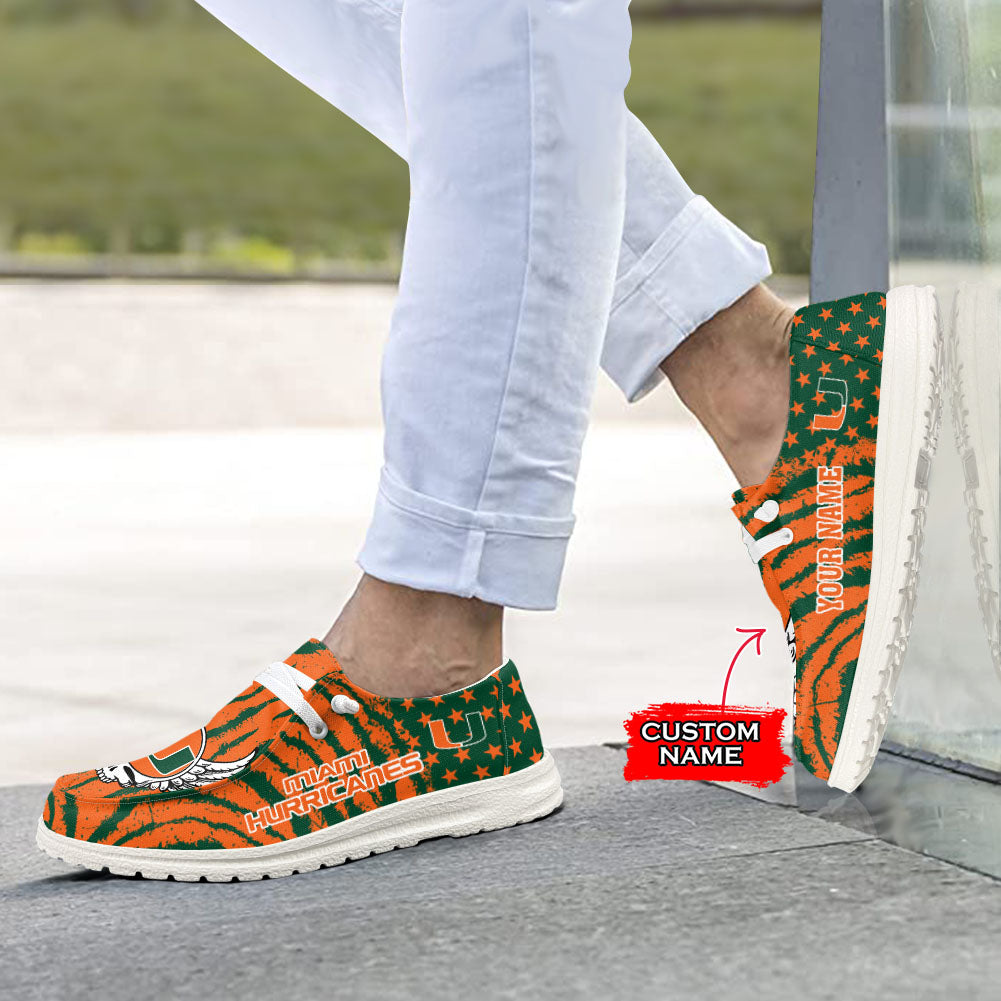 Ncaa Miami Hurricanes Custom Name Dude Shoes For Men & Women