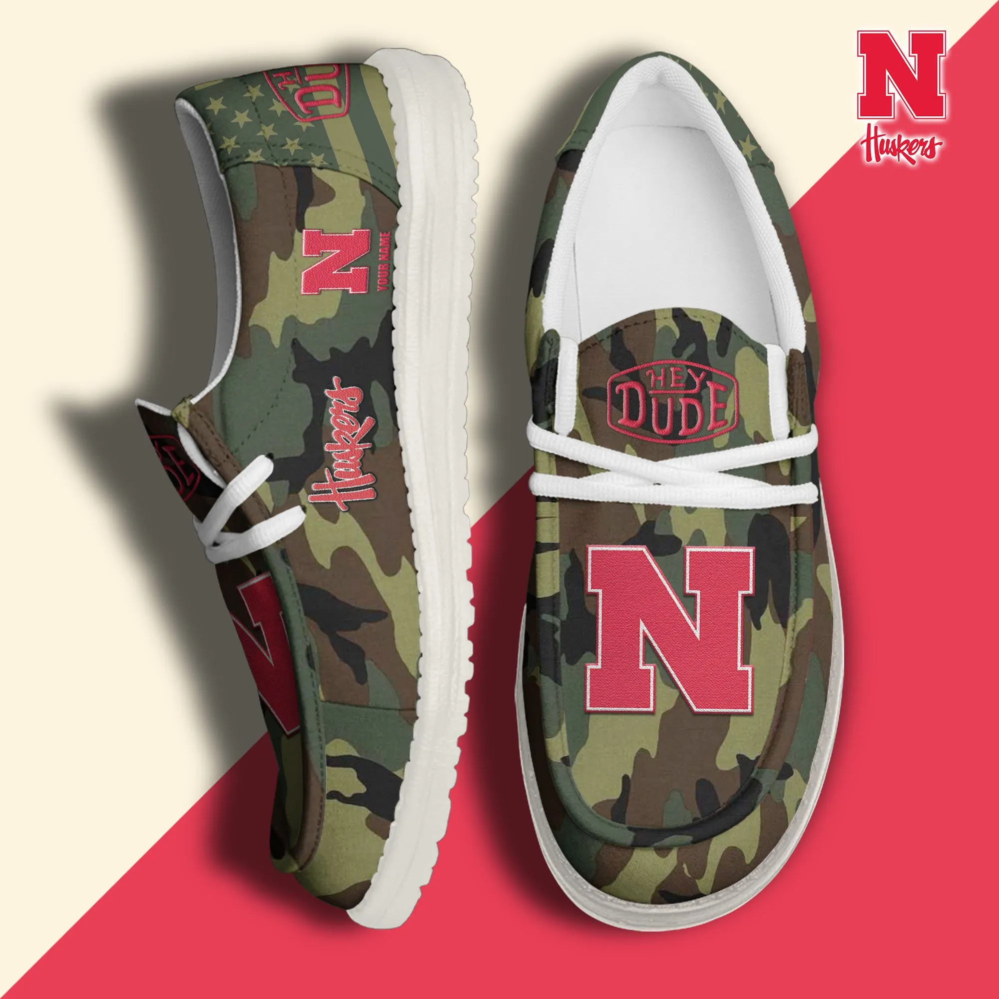Nebraska Cornhuskers 3D Print Dude Shoes Camo Blue Grey For Men Women