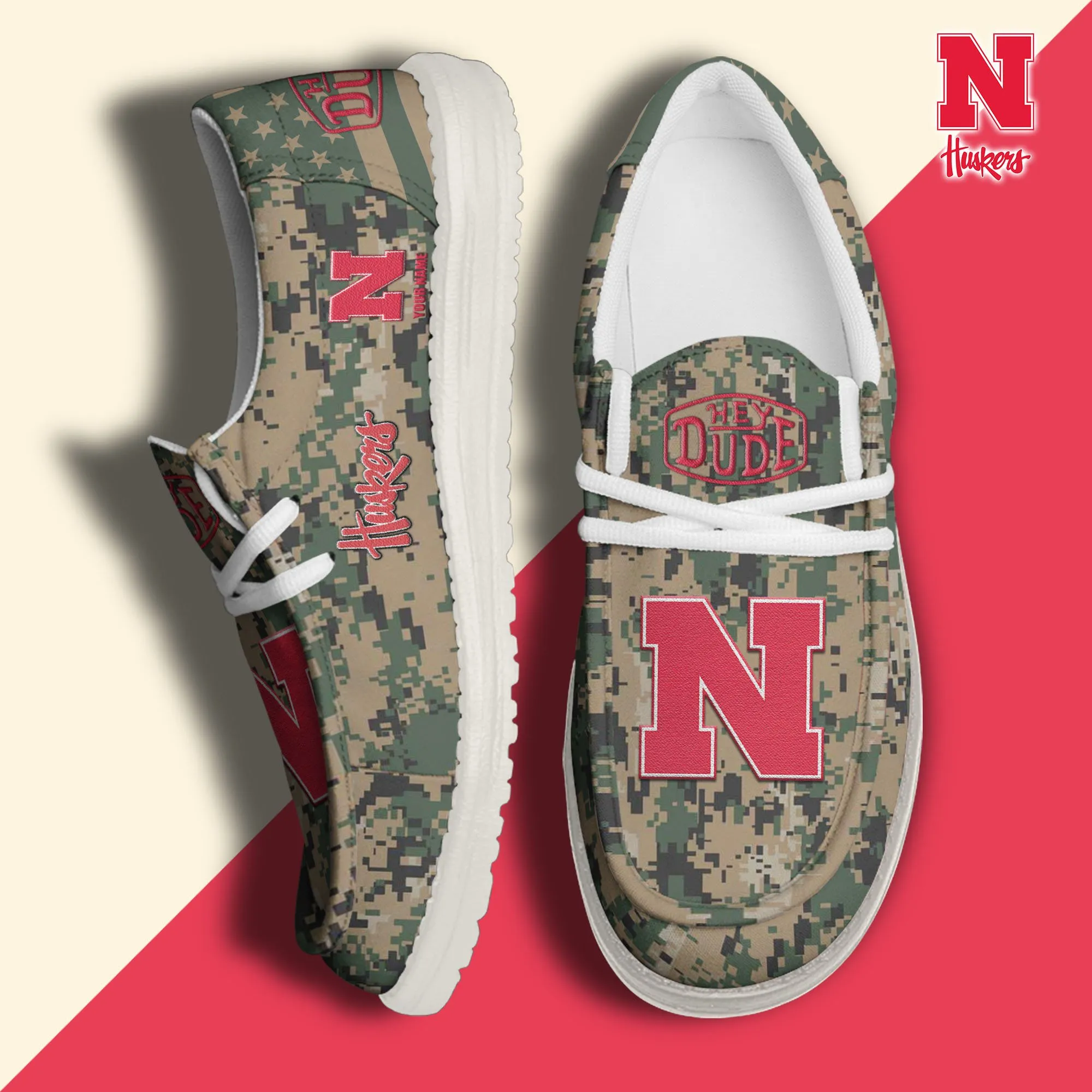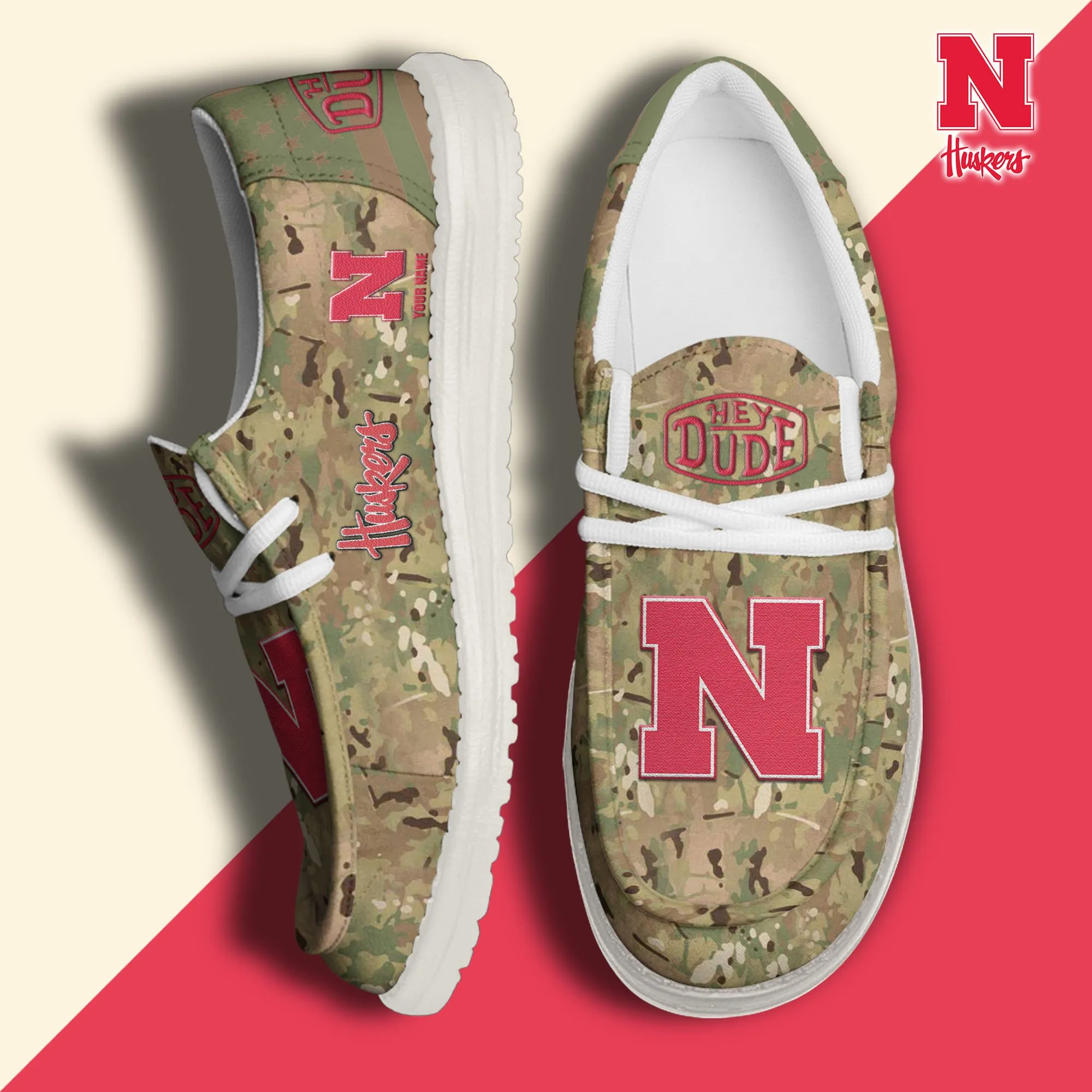 Nebraska Cornhuskers 3D Print Dude Shoes Camo Green Best Gift For Sport Fan