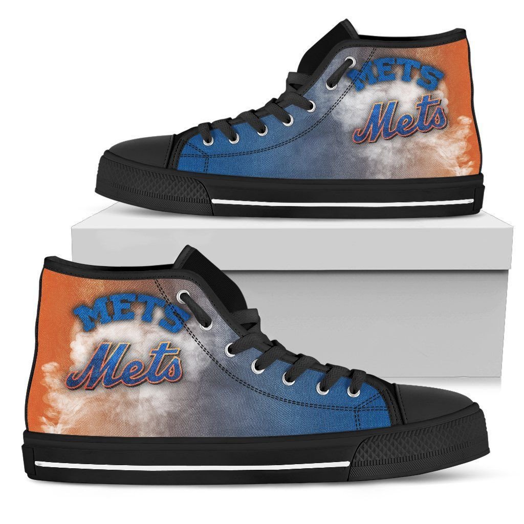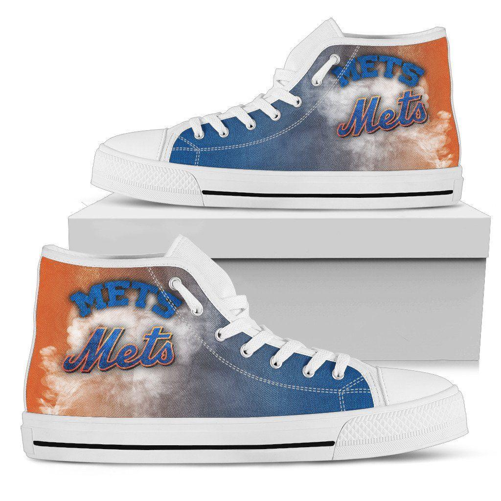 White Smoke Vintage New York Mets High Top Shoes Printed For Men And Women