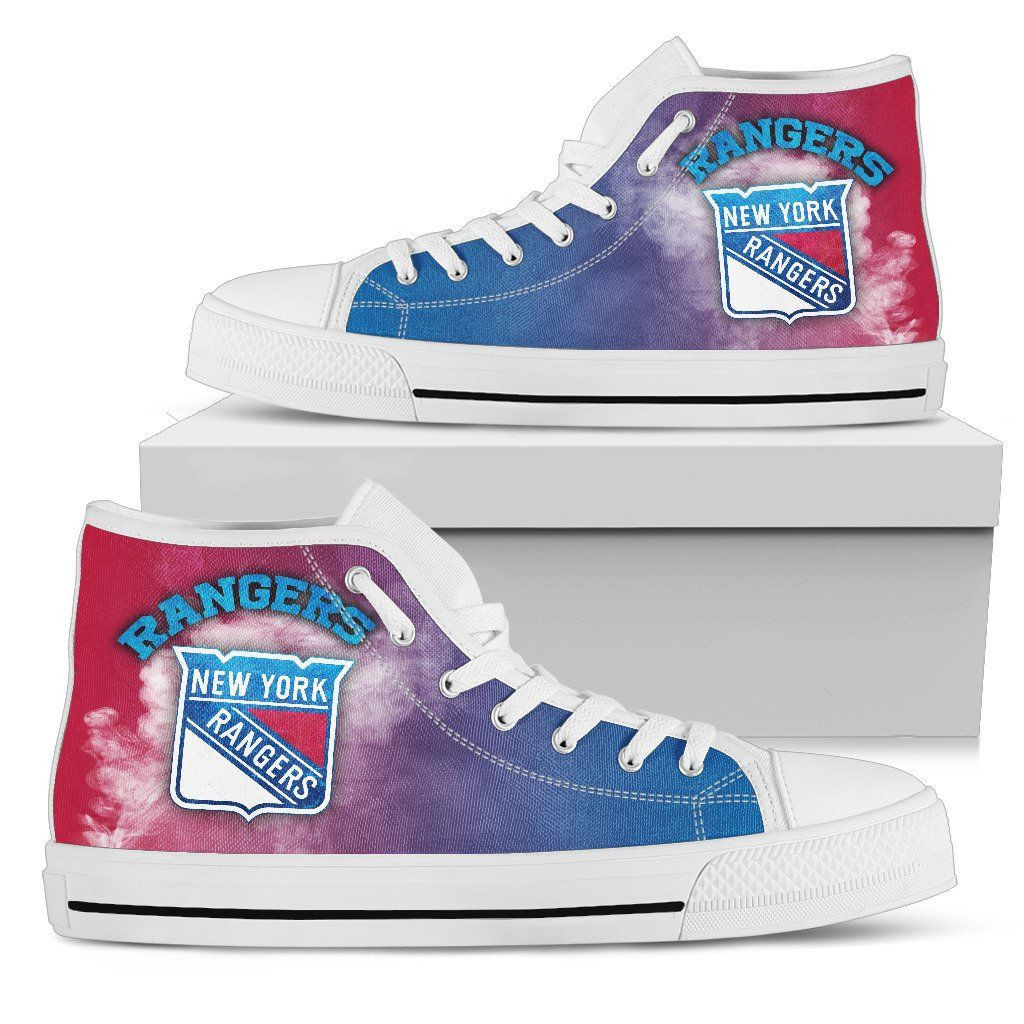 White Smoke Vintage New York Rangers High Top Shoes Printed For Men And Women