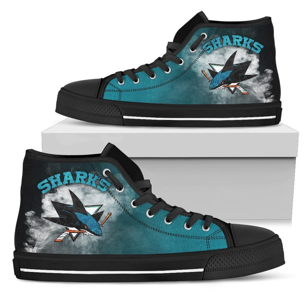 White Smoke Vintage San Jose Sharks High Top Shoes Printed For Men And Women