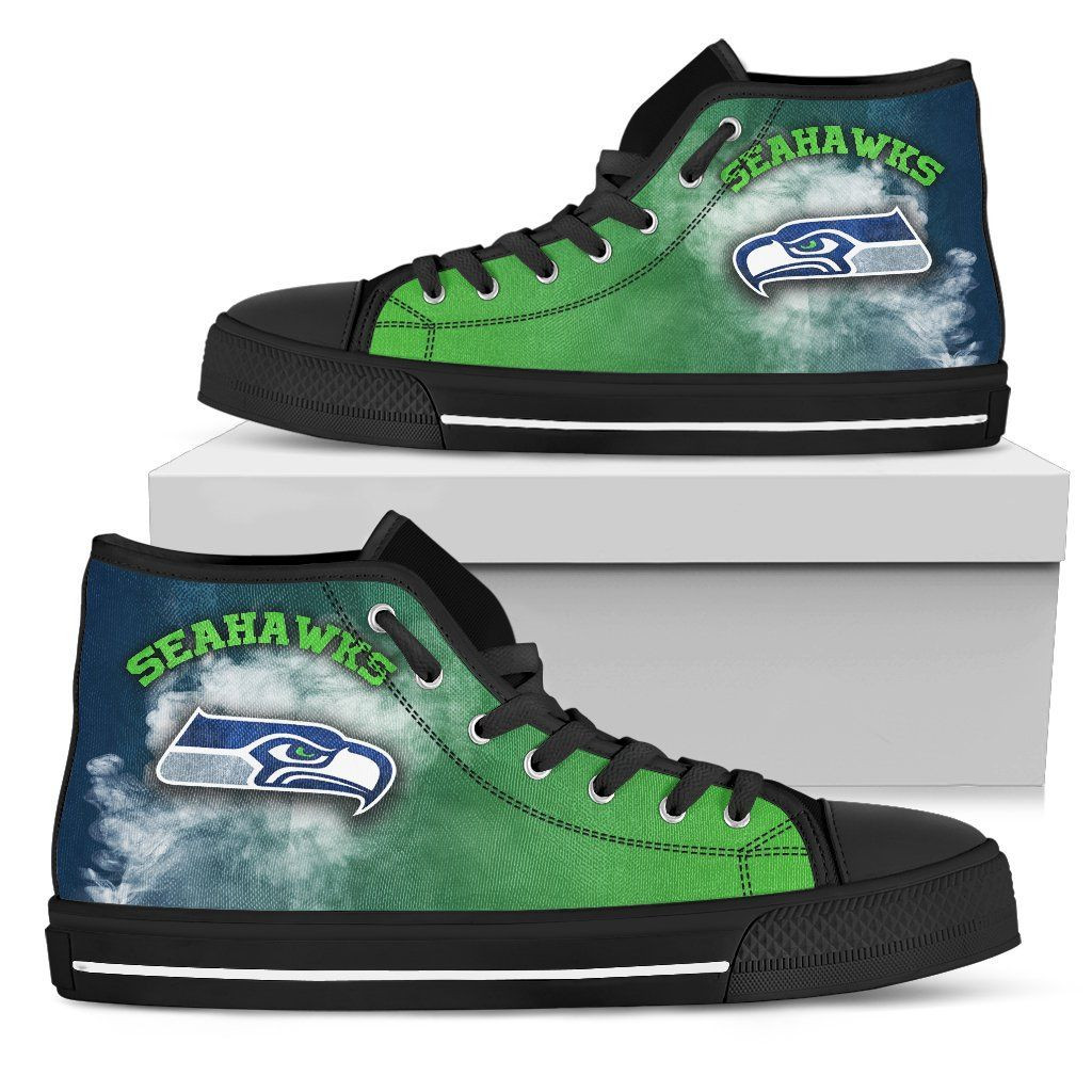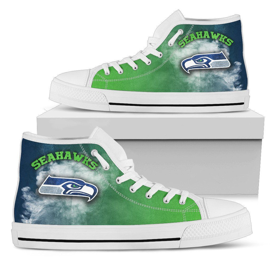 White Smoke Vintage Seattle Seahawks High Top Shoes Printed For Men And Women
