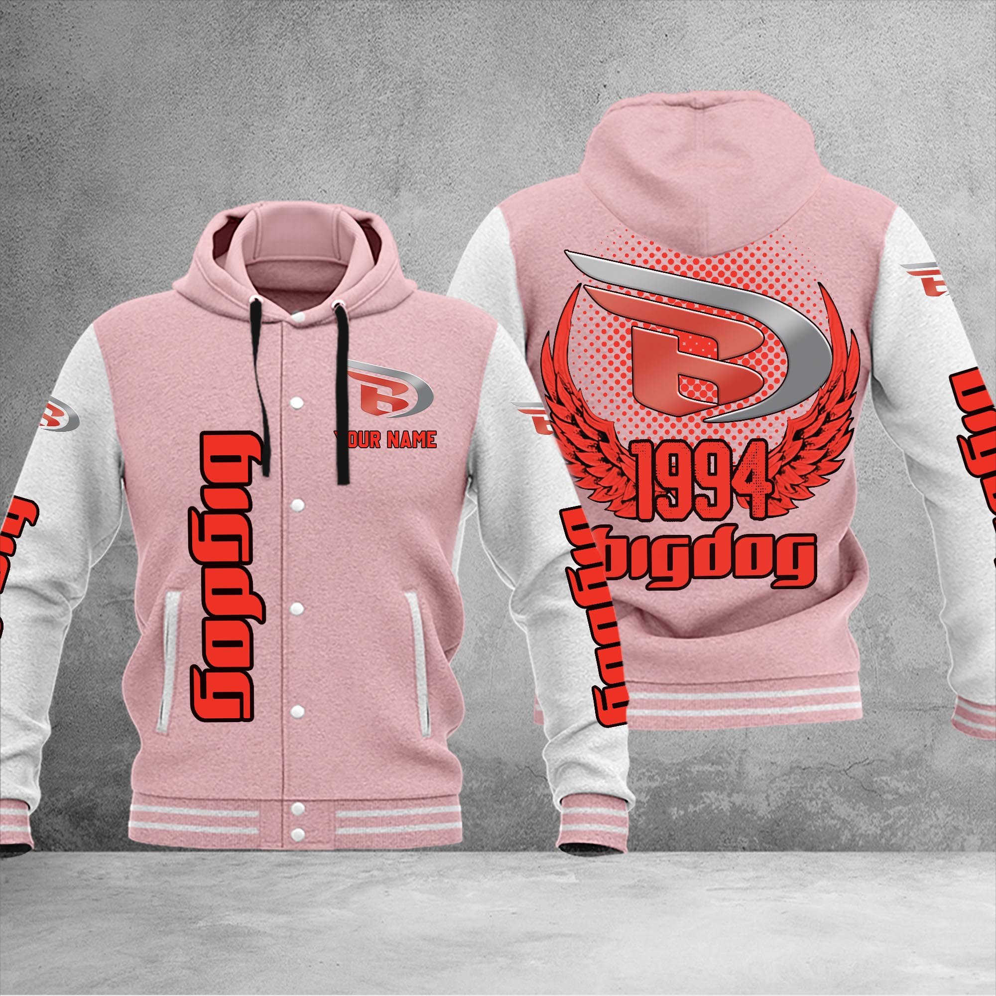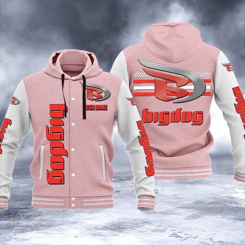 Big Dog Motorcycles Personalized Hooded Baseball Jacket For Fans Pink