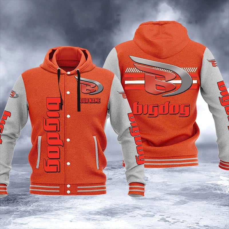 Big Dog Motorcycles Personalized Hooded Baseball Jacket For Fans Orange