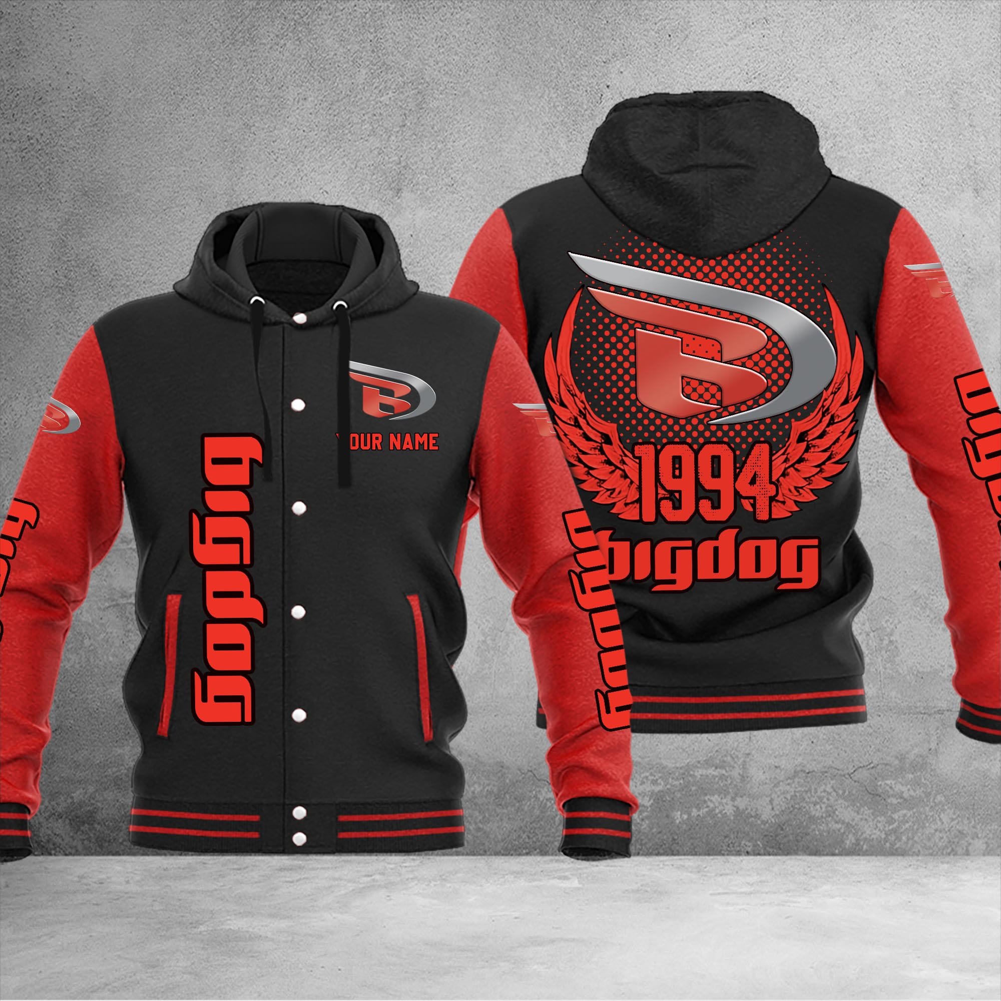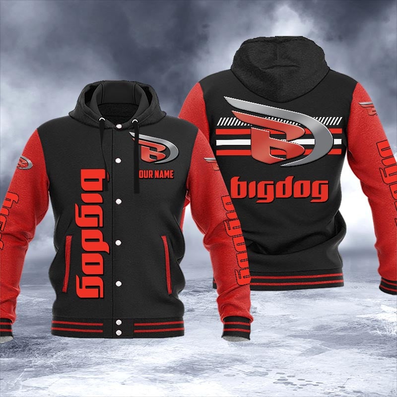 Big Dog Motorcycles Personalized Hooded Baseball Jacket For Fans Red Black