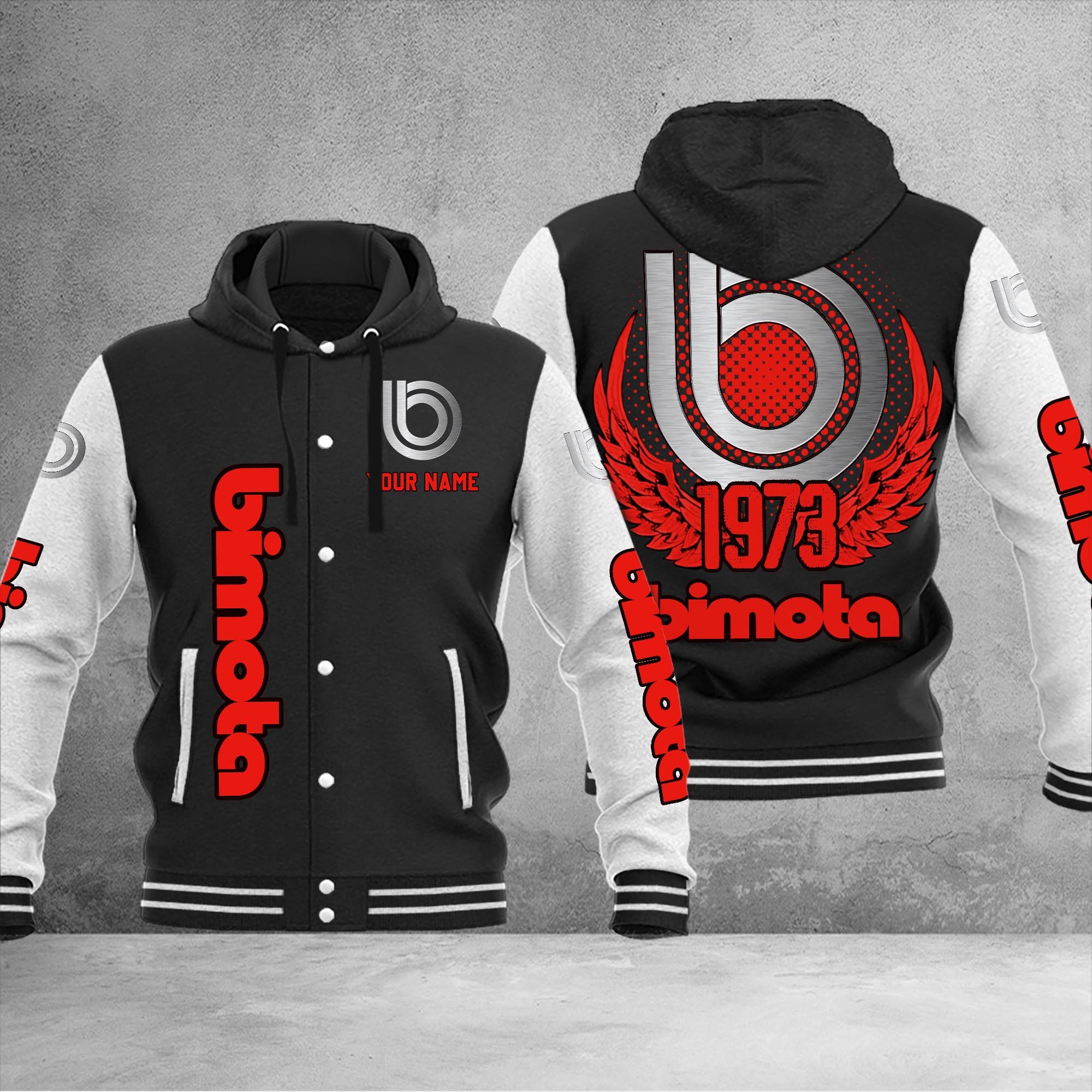 Bimota Custom Hooded Baseball Jacket For Fans Red Black