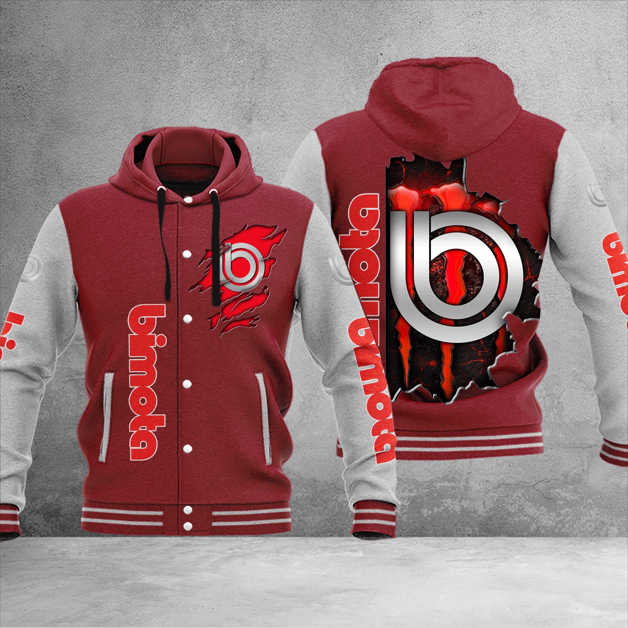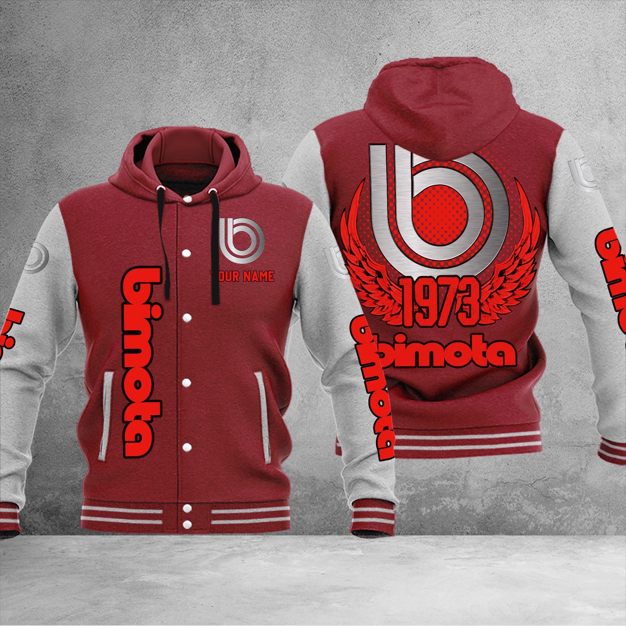Bimota Personalized Hooded Baseball Jacket For Fans Dark Red