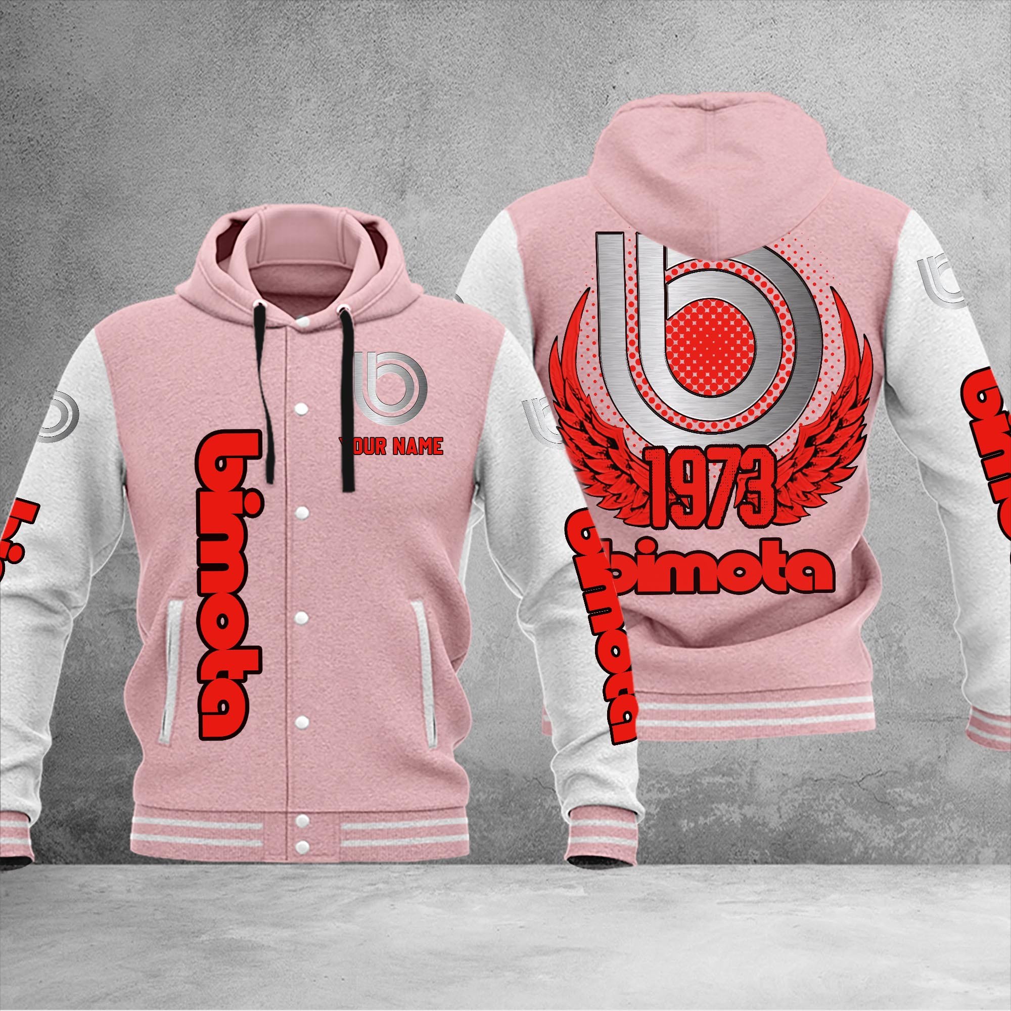 Bimota Personalized Hooded Baseball Jacket For Fans Pink