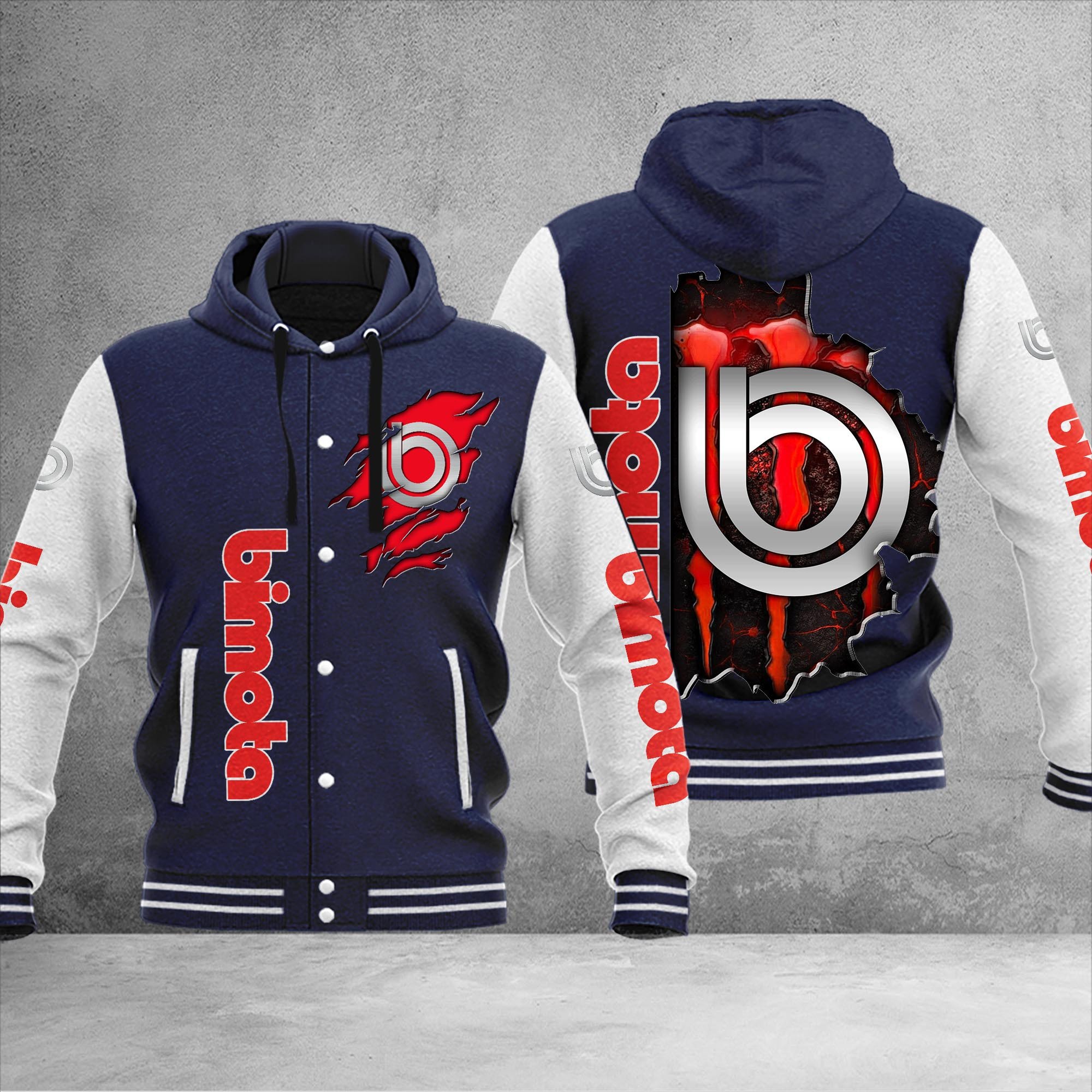 Bimota Personalized Hooded Baseball Jacket For Fans Navy
