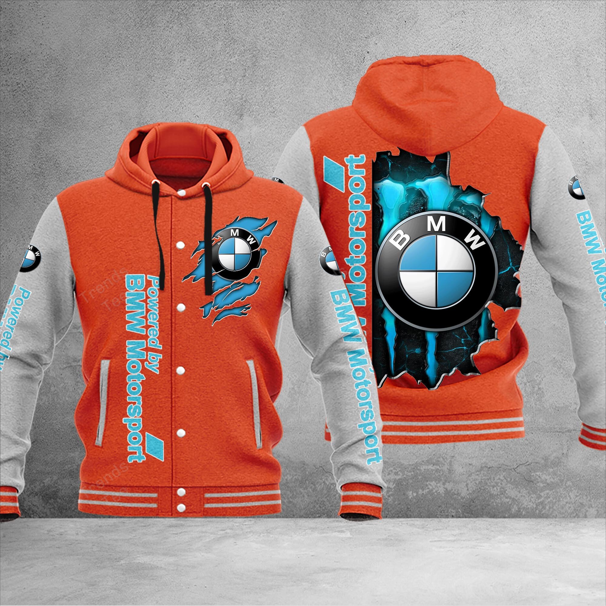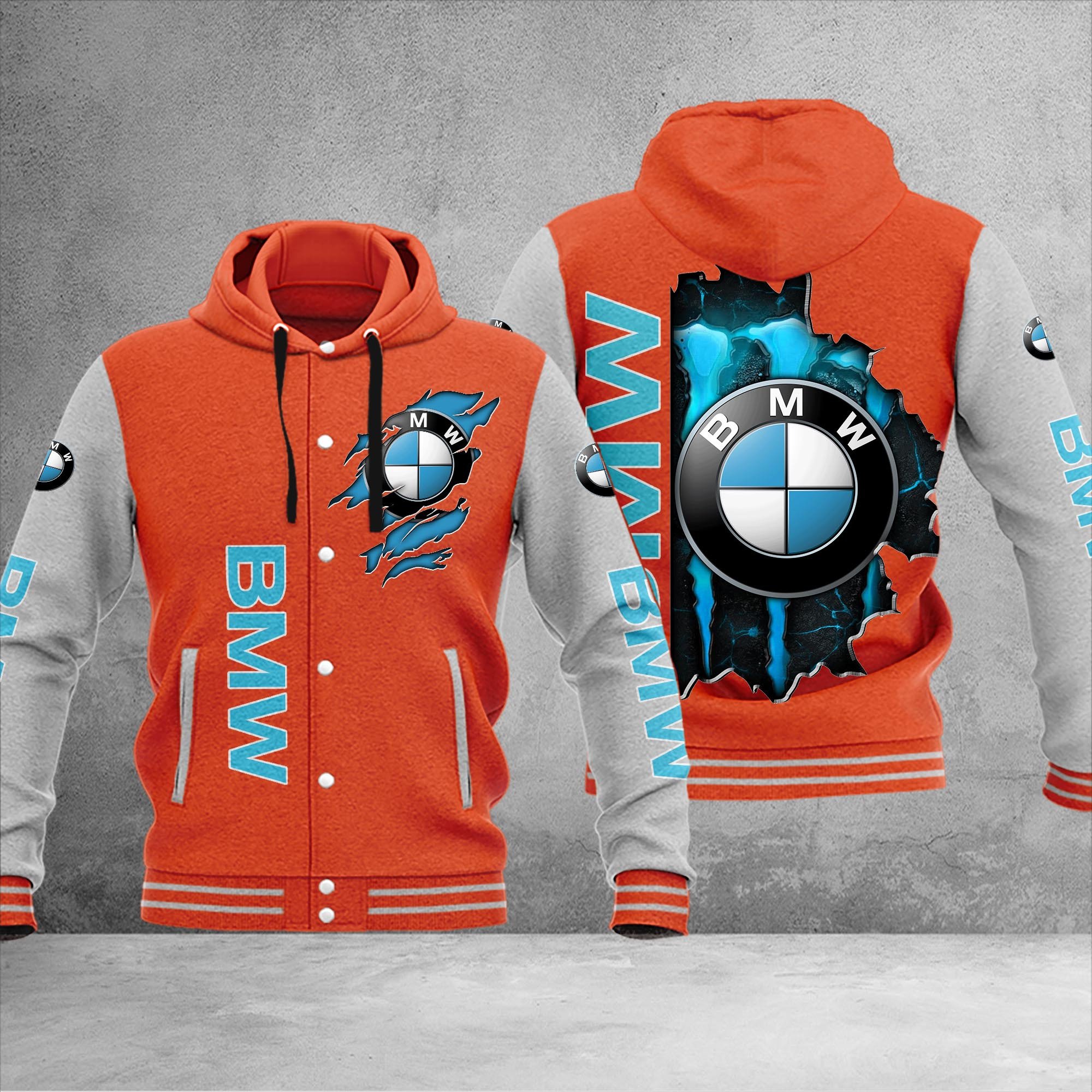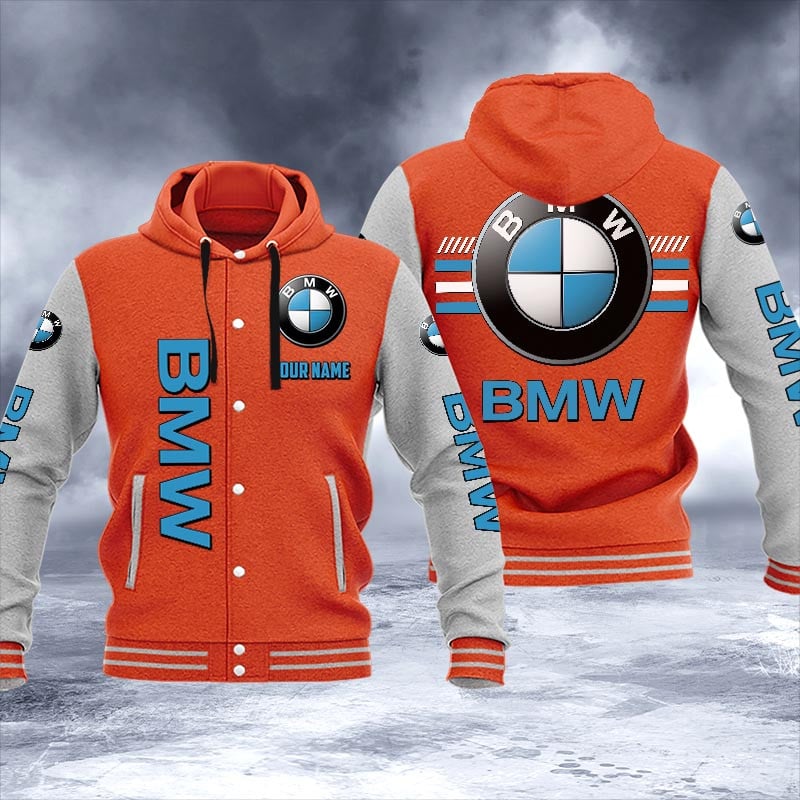 BMW Custom Name Hooded Baseball Jacket For Fans Orange
