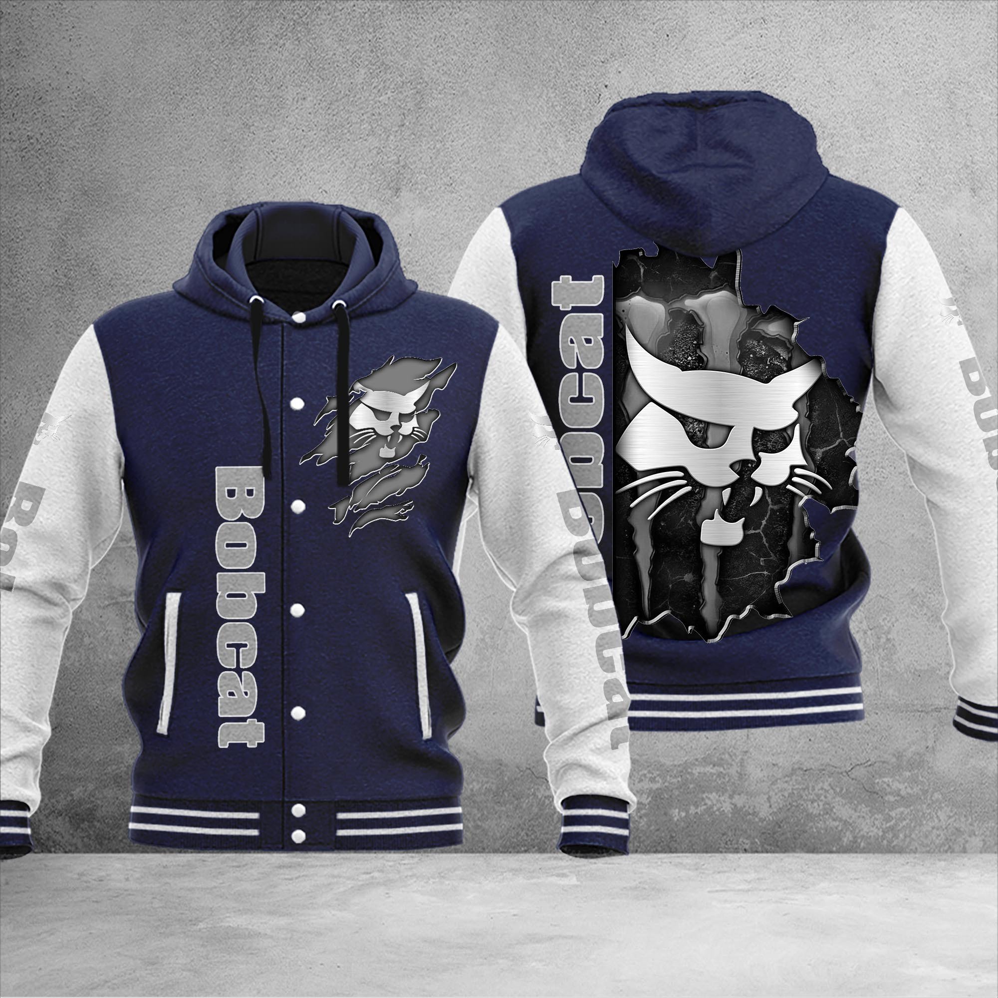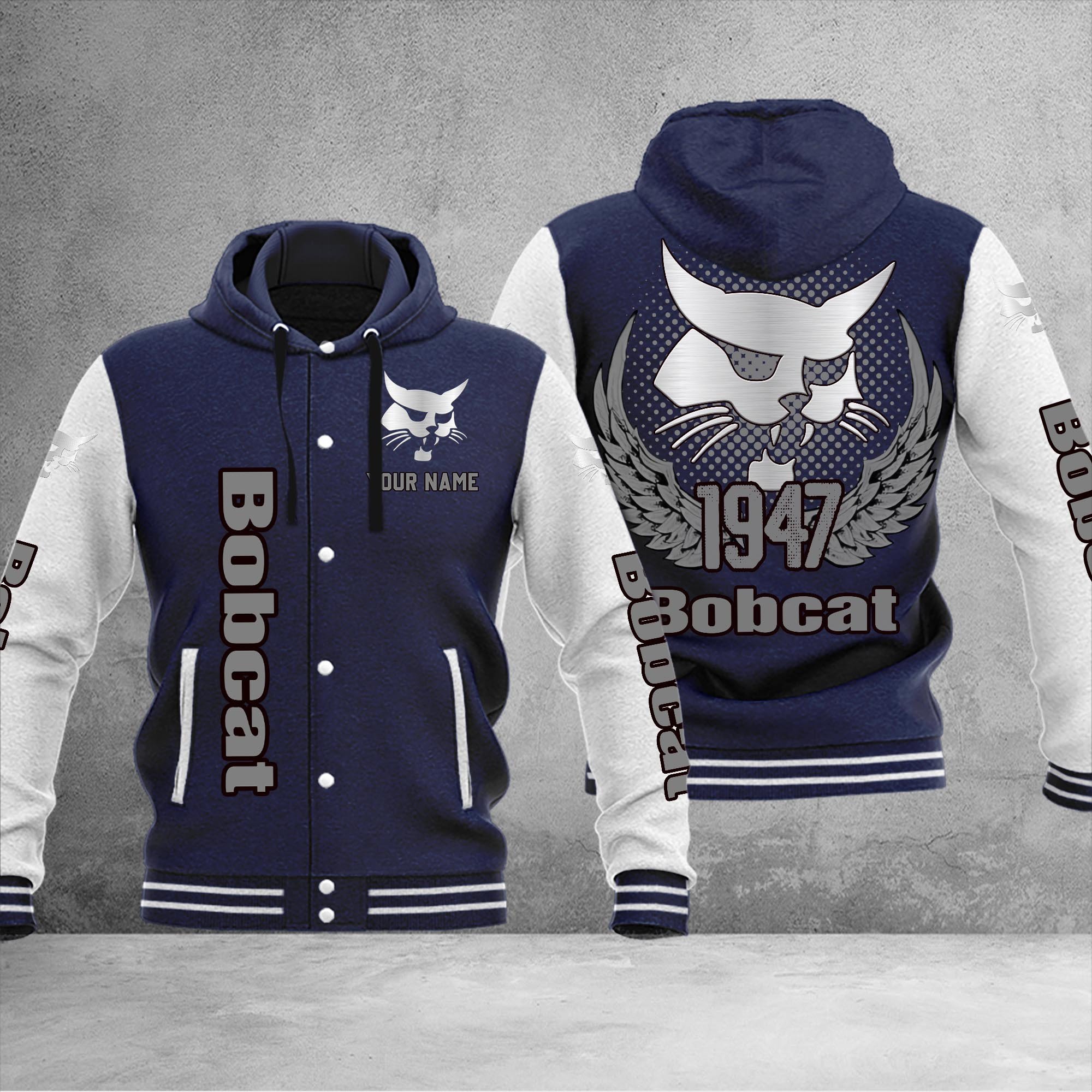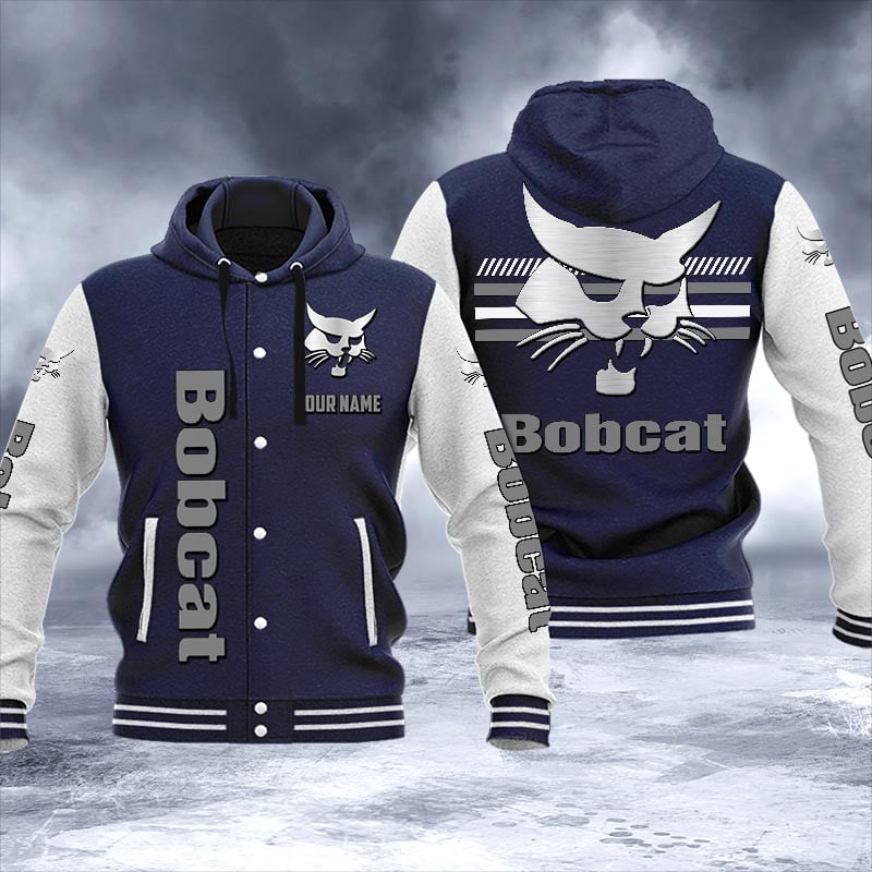Bobcat Personalized Hooded Baseball Jacket For Fans Navy