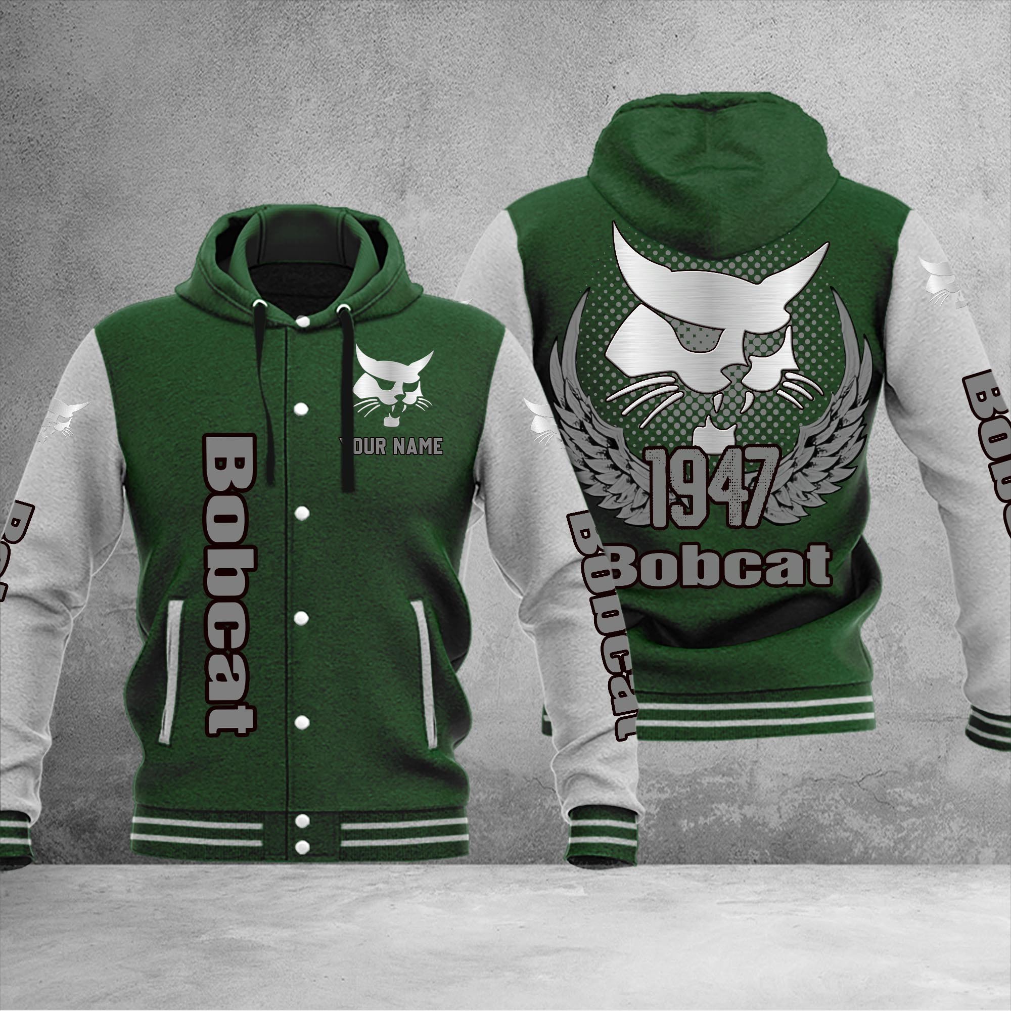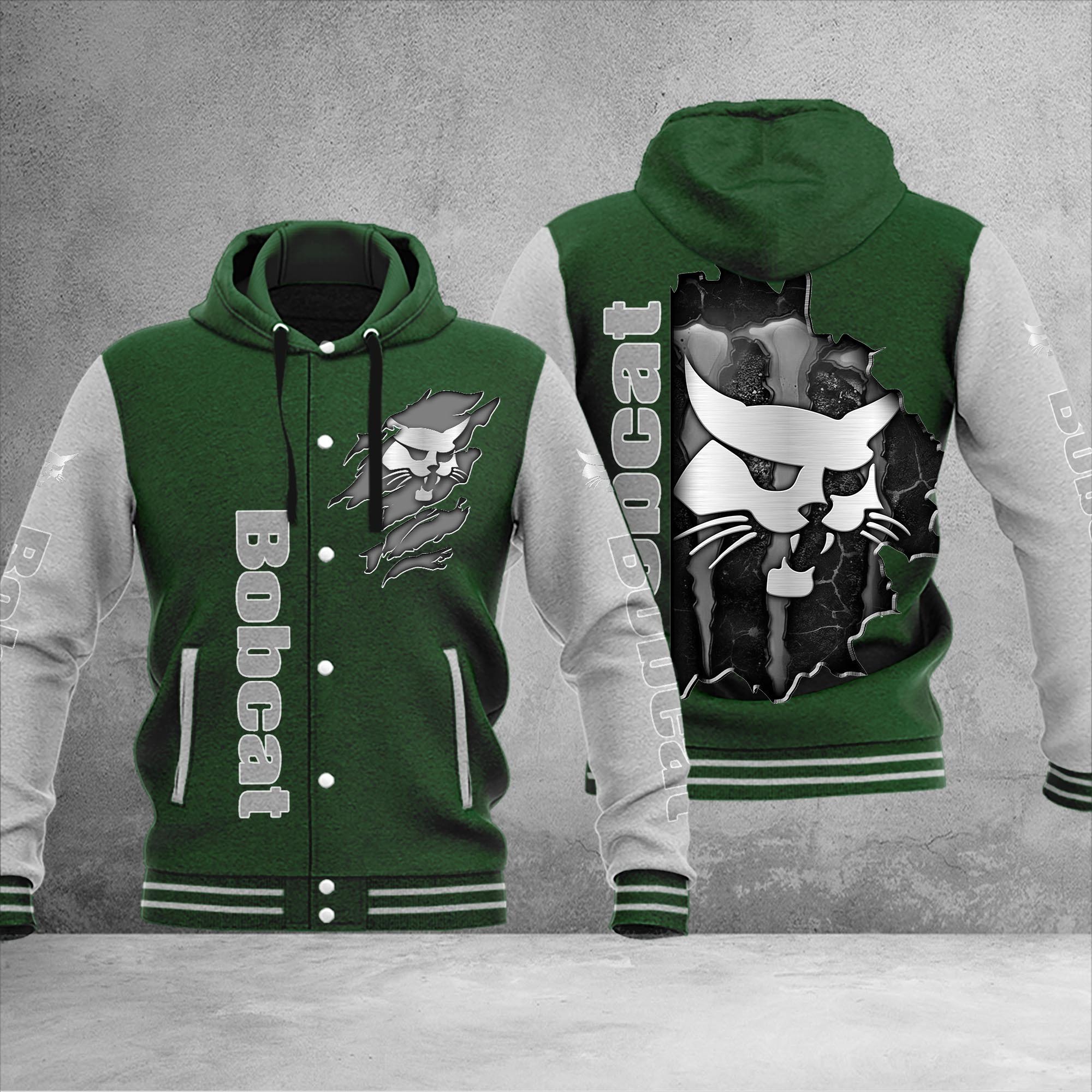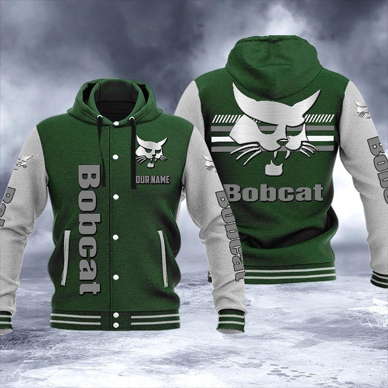 Bobcat Personalized Hooded Baseball Jacket For Fans Green