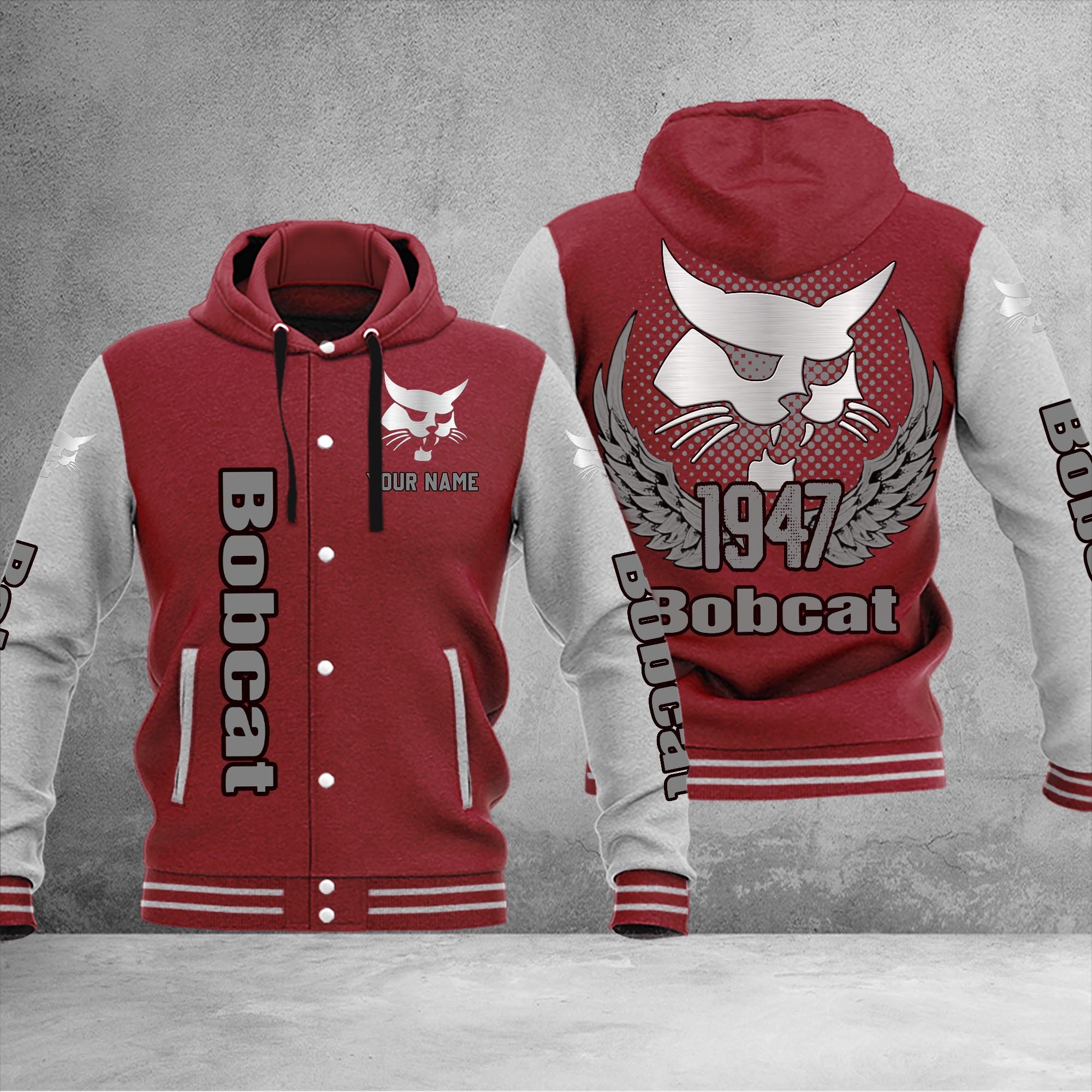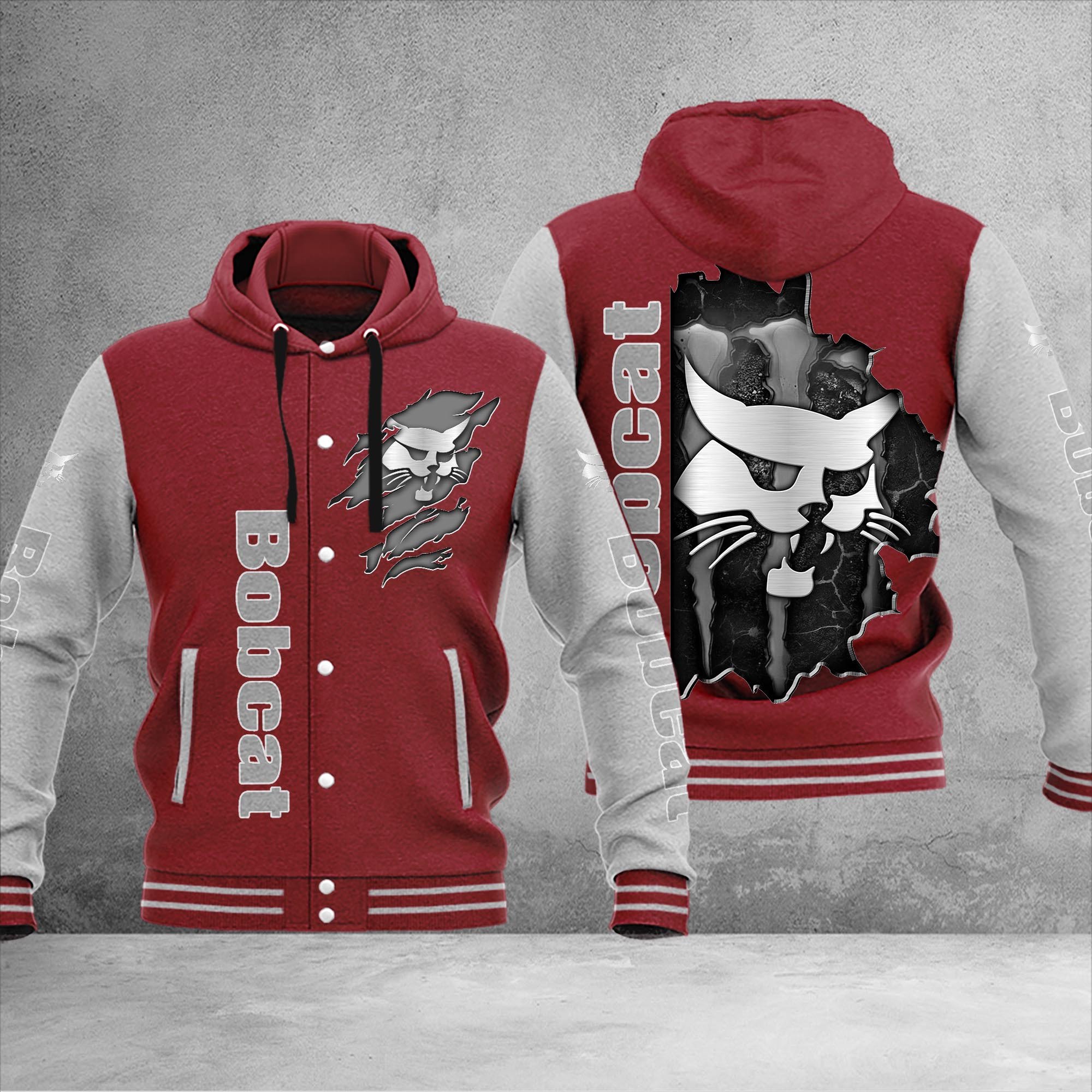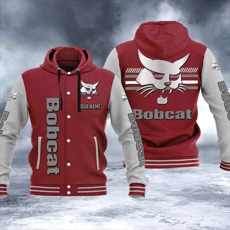 Bobcat Personalized Hooded Baseball Jacket For Fans Dark Red