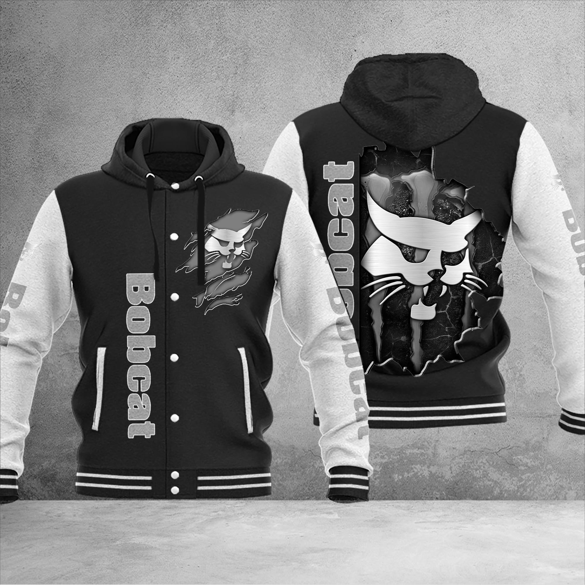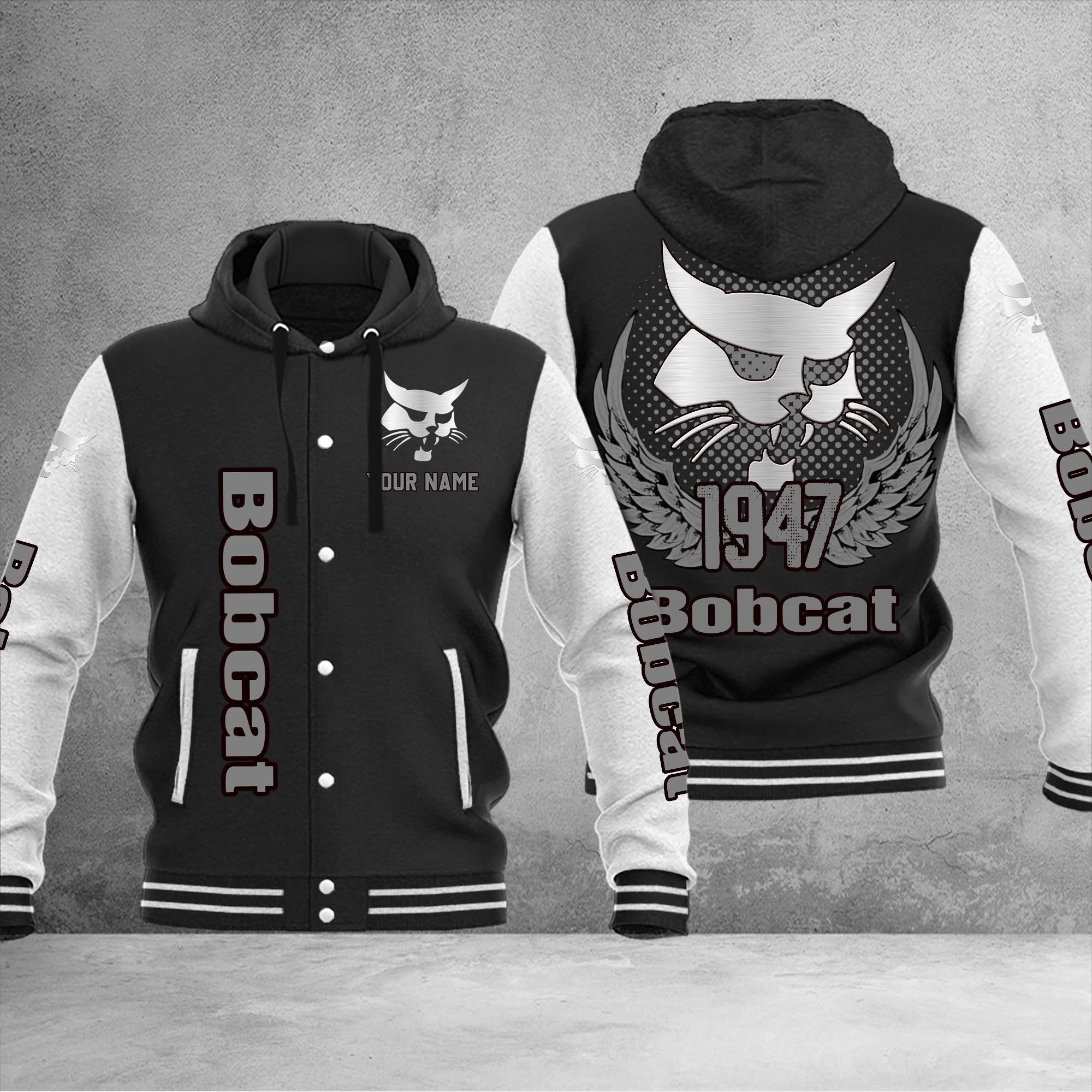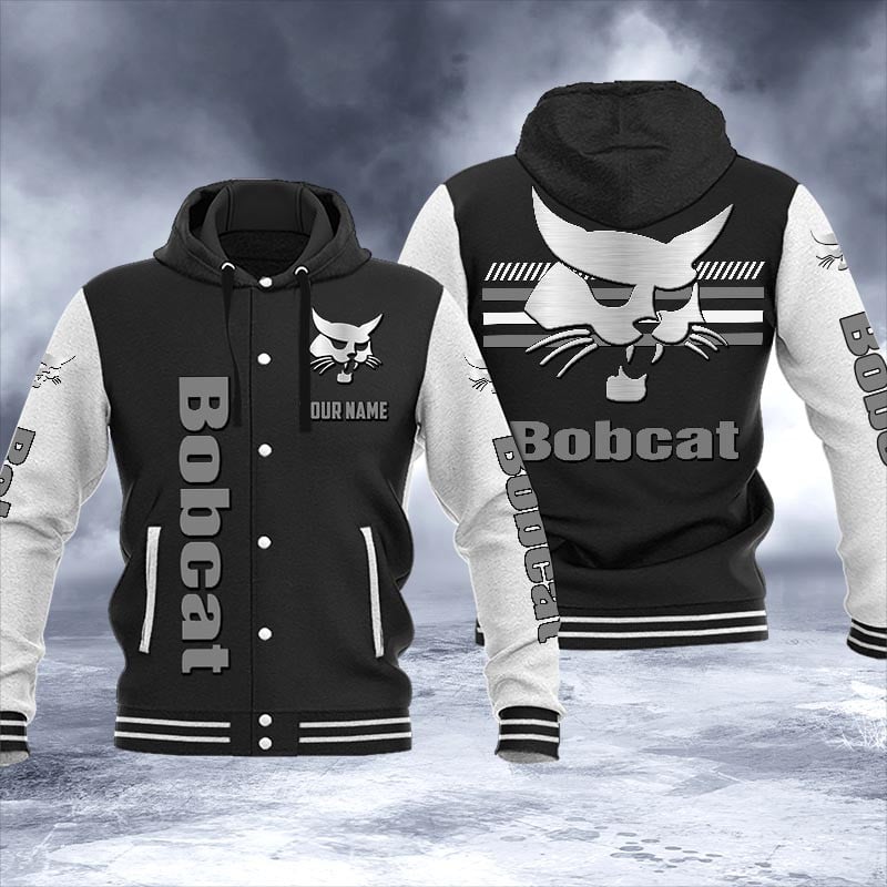 Bobcat Personalized Hooded Baseball Jacket For Fans Black