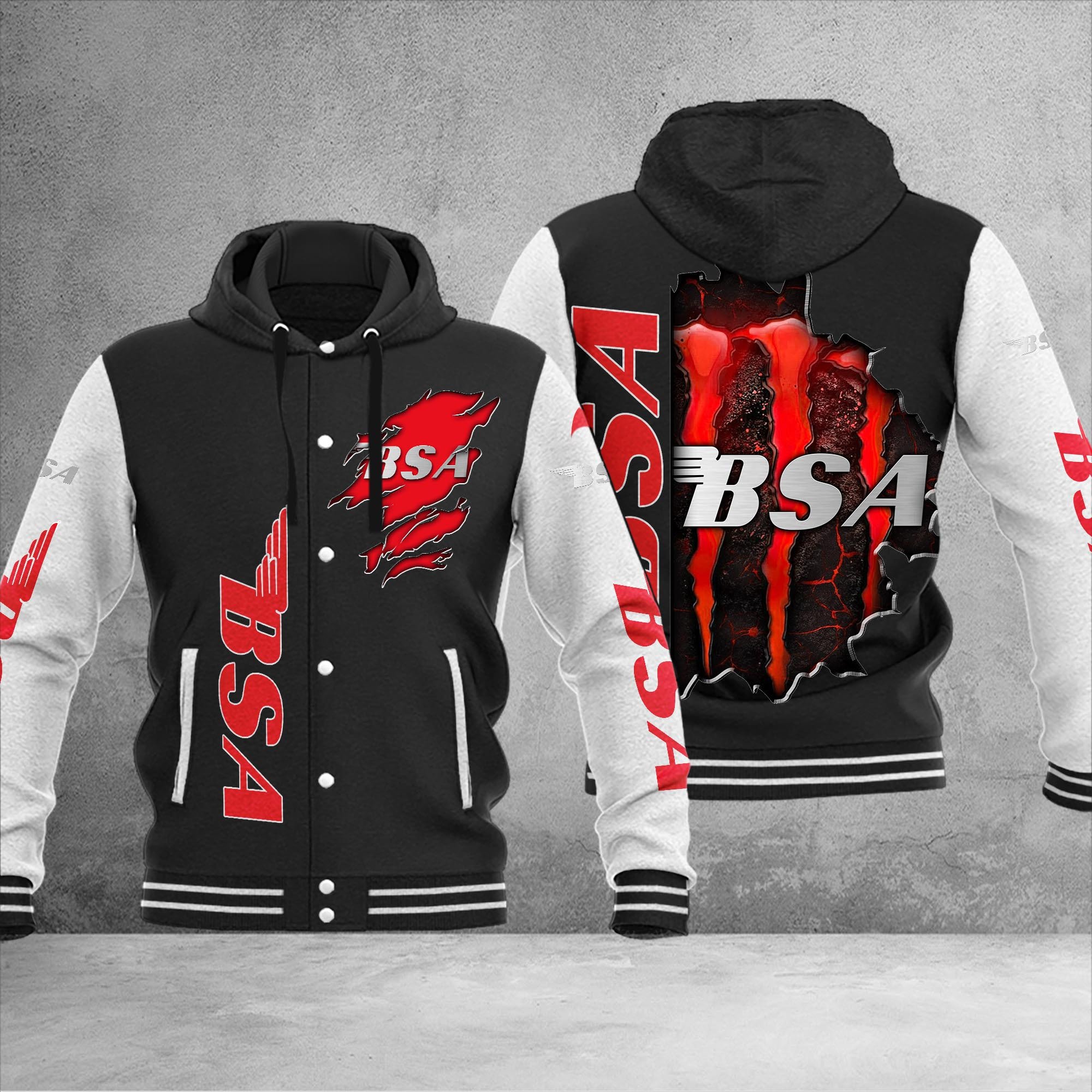 BSA Personalized Hooded Baseball Jacket For Moto Fans Black