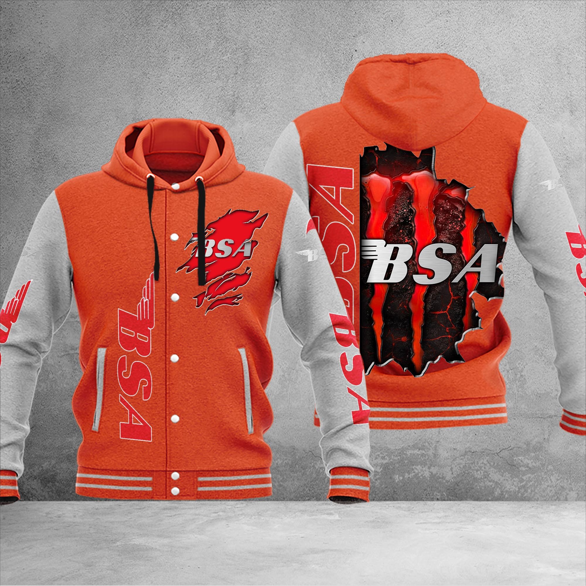 BSA Personalized Hooded Baseball Jacket For Moto Fans Orange