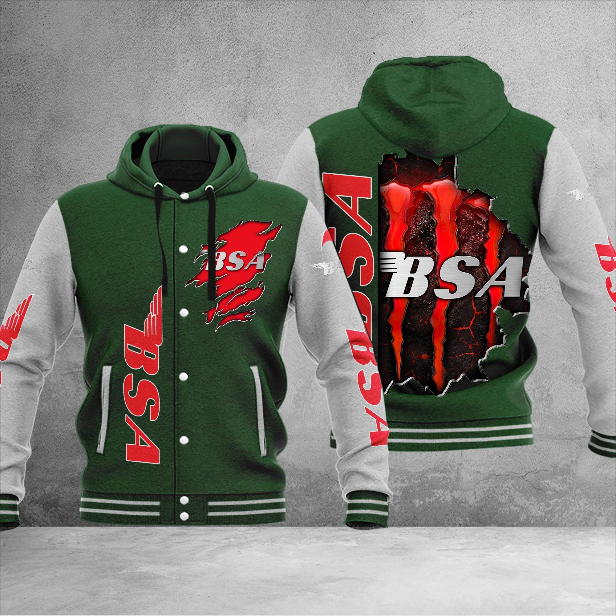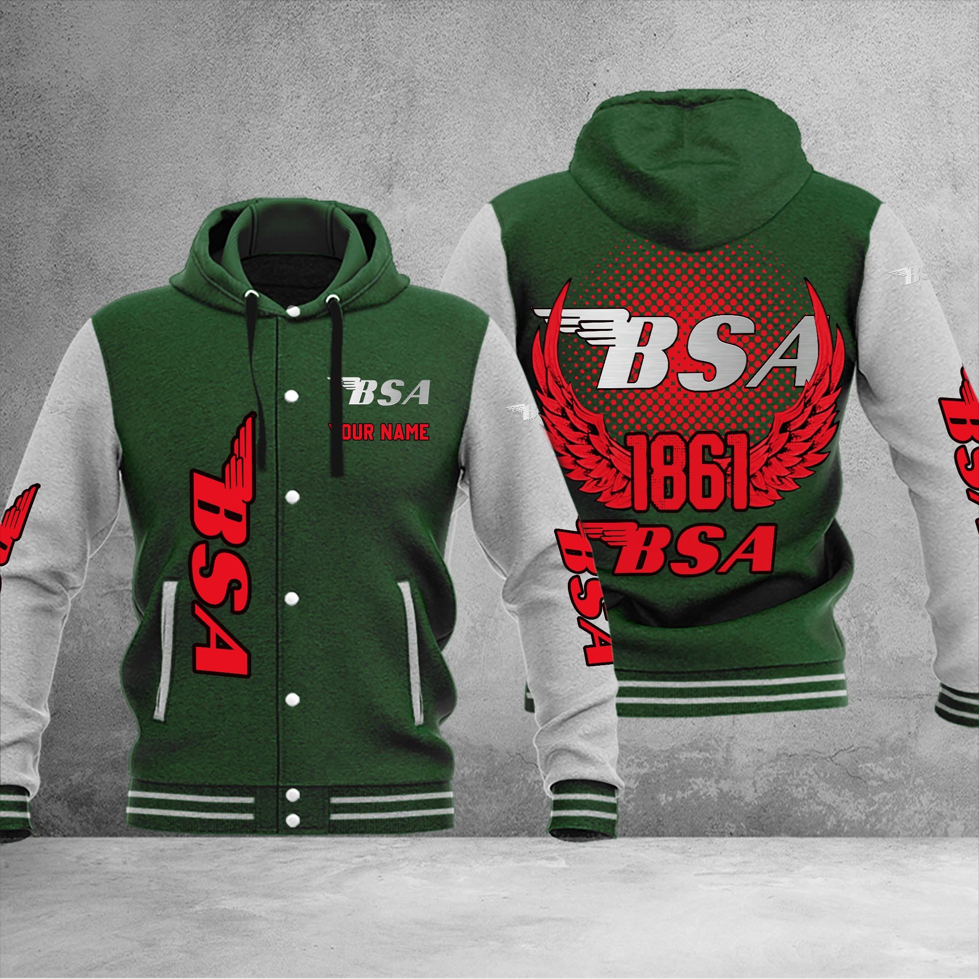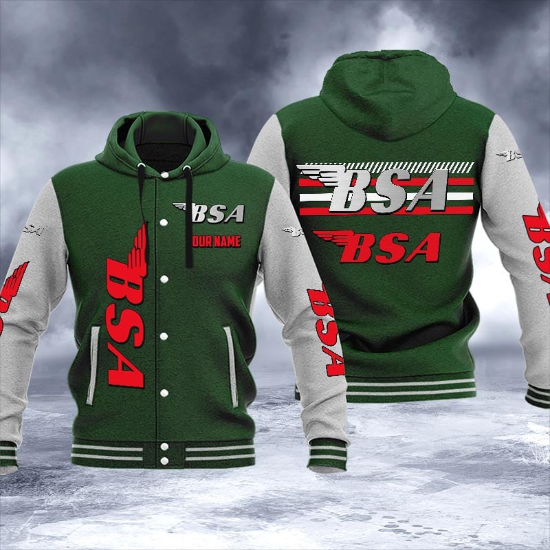 BSA Personalized Hooded Baseball Jacket For Moto Fans Green