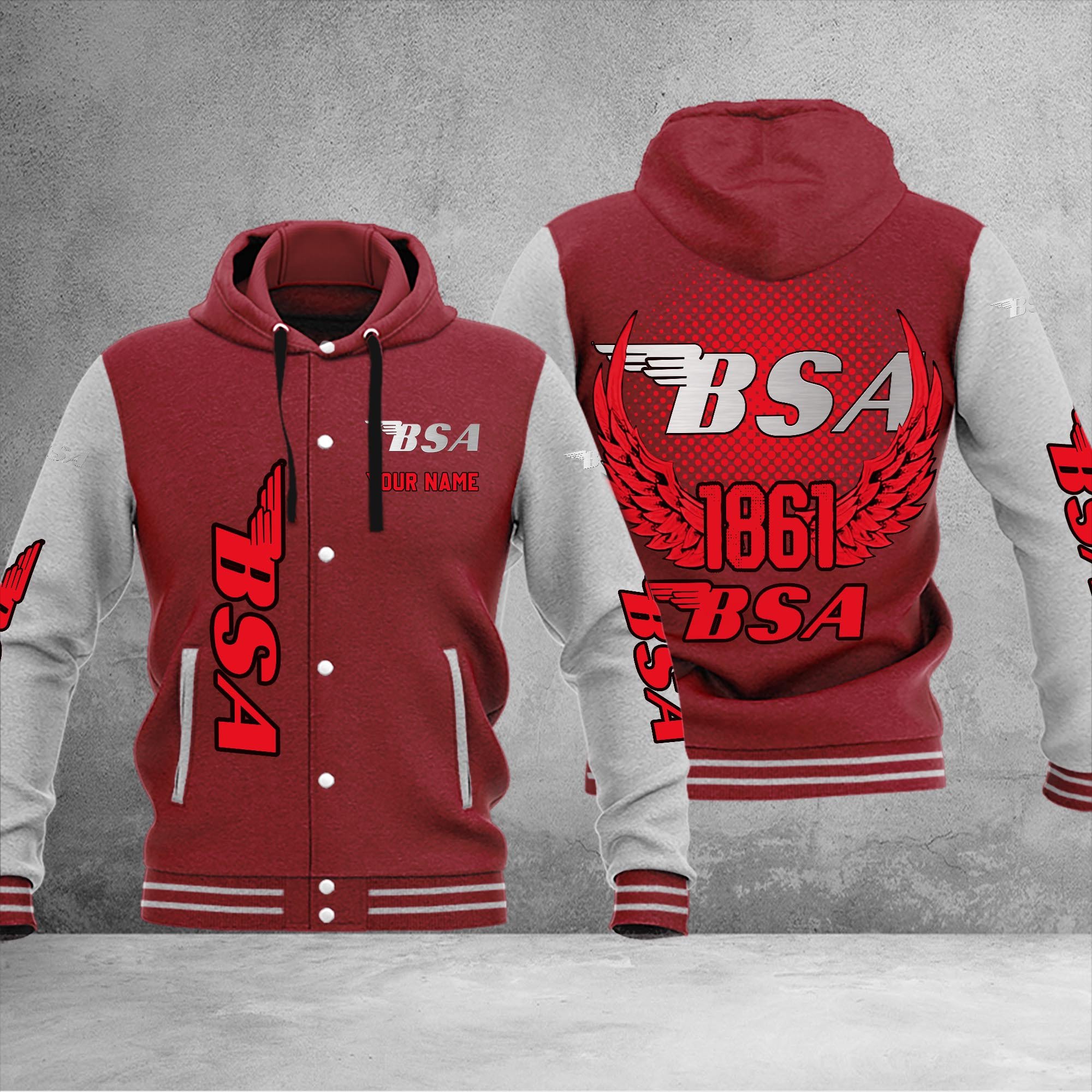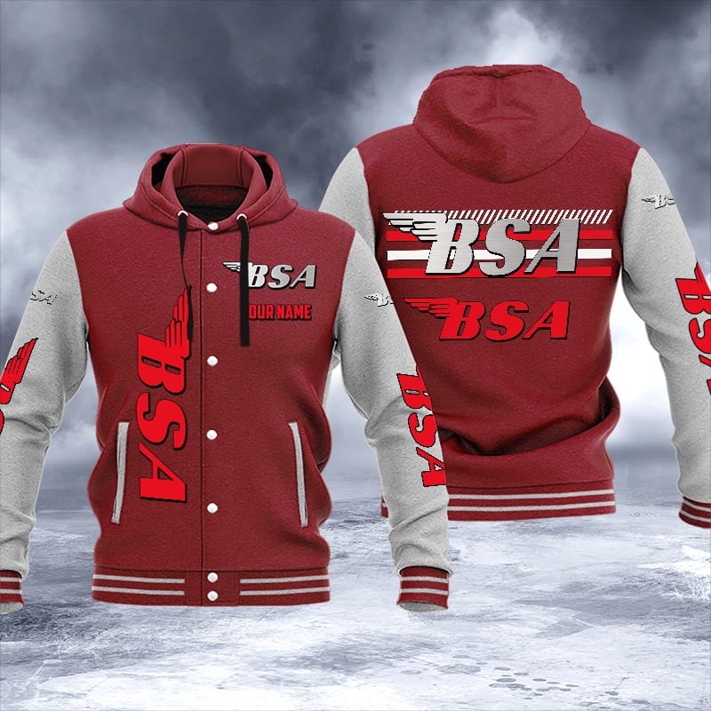 BSA Personalized Hooded Baseball Jacket For Moto Fans Dark Red