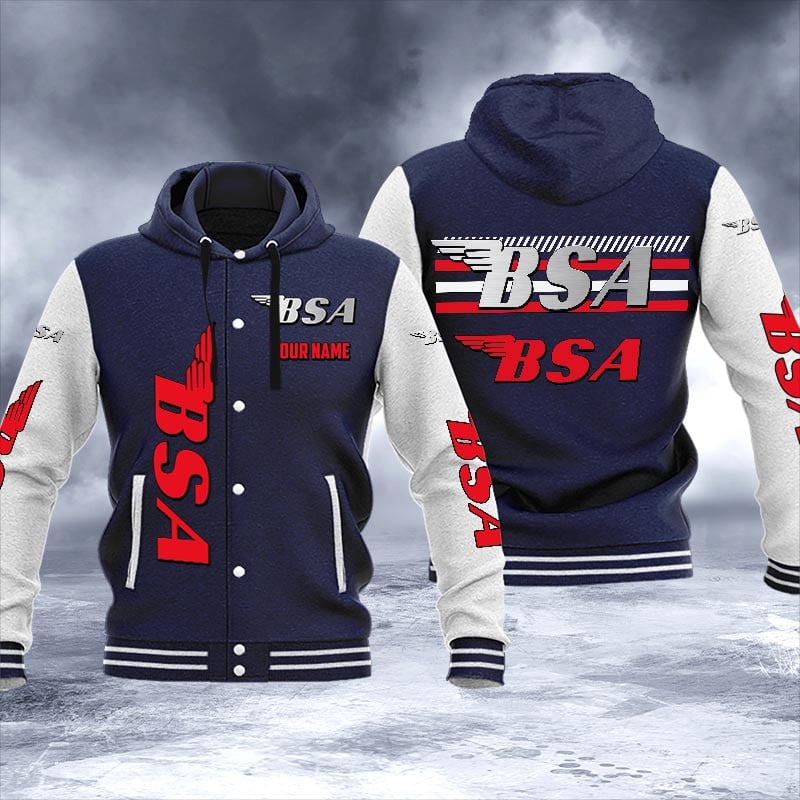 BSA Personalized Hooded Baseball Jacket For Moto Fans Navy