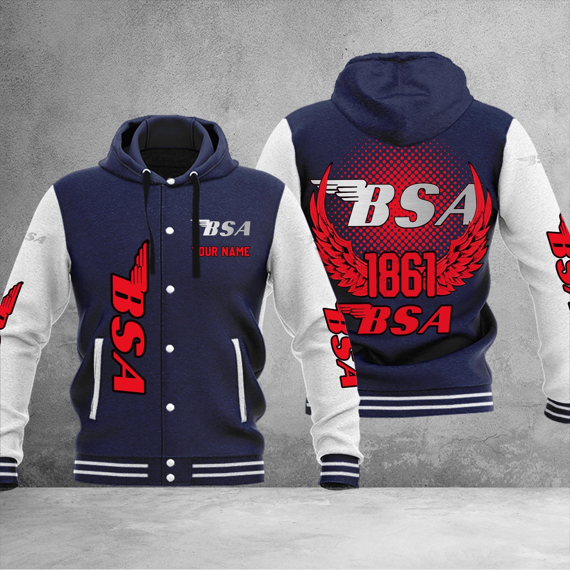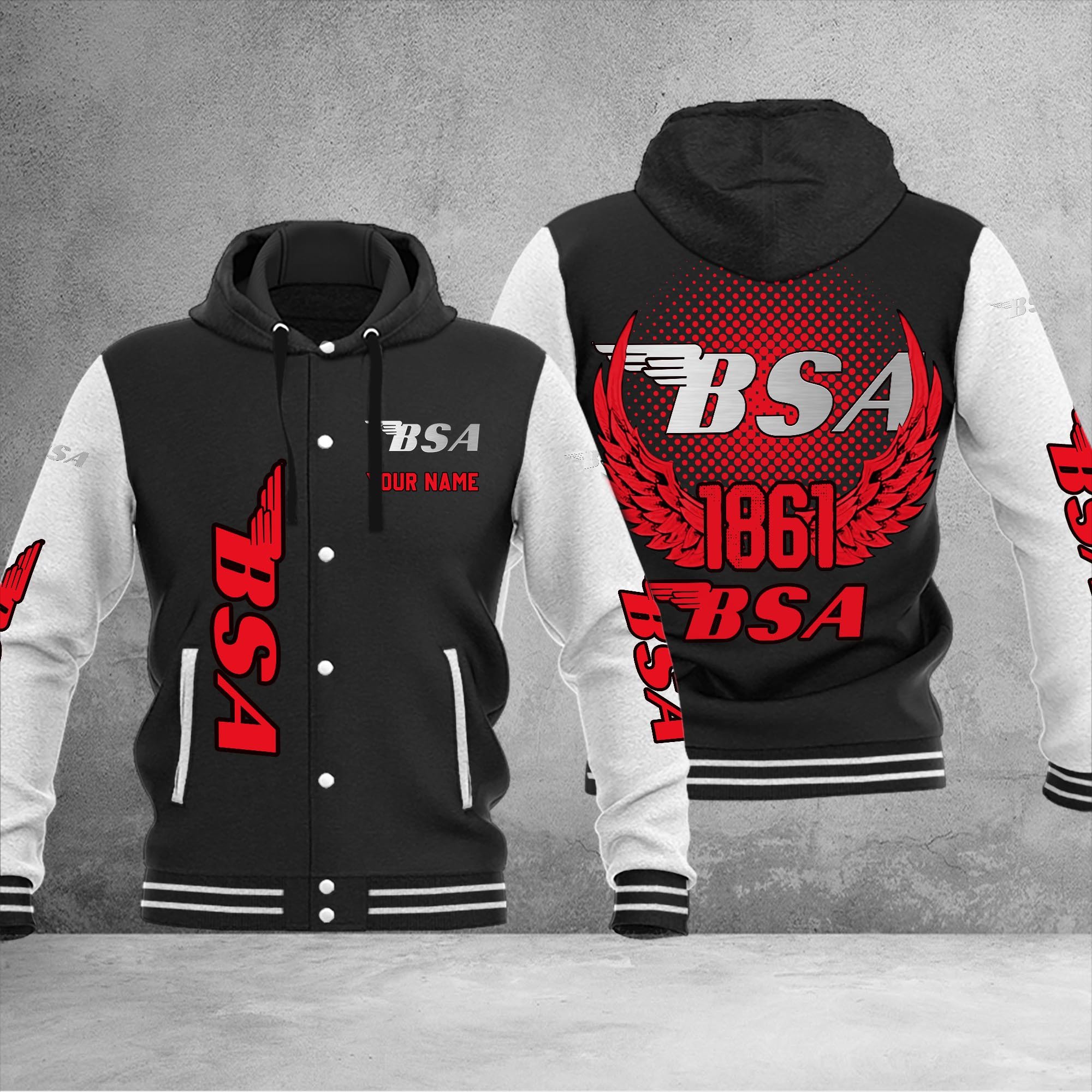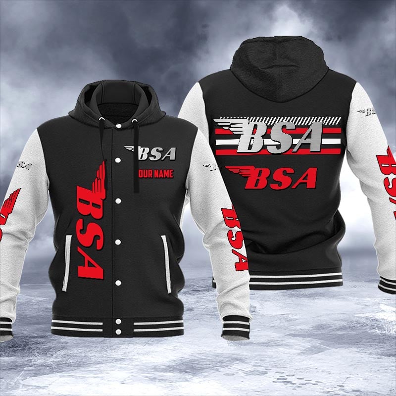 BSA Personalized Hooded Baseball Jacket For Moto Fans Black