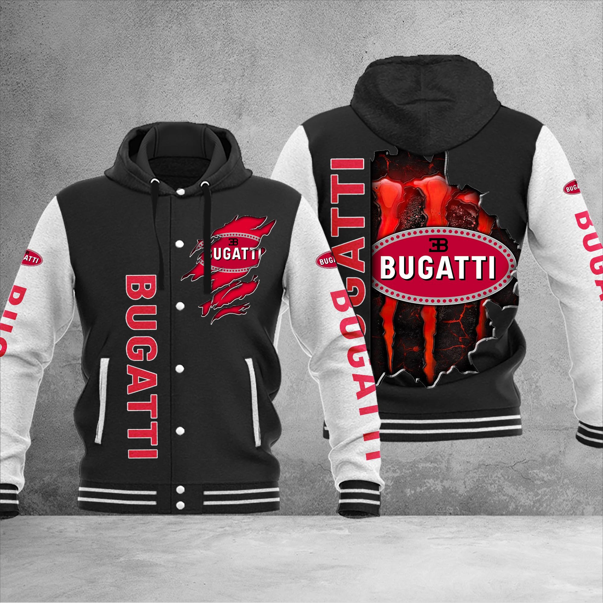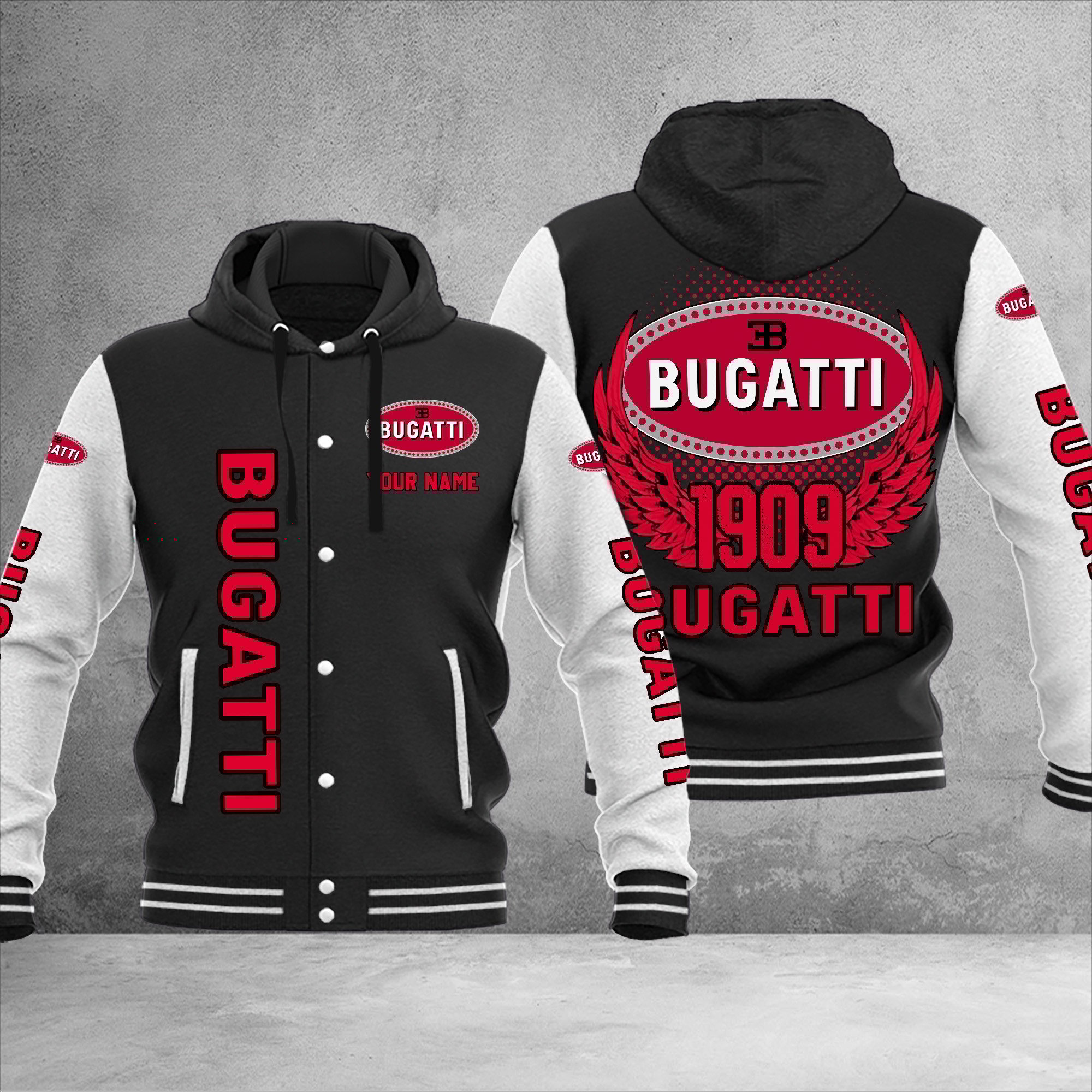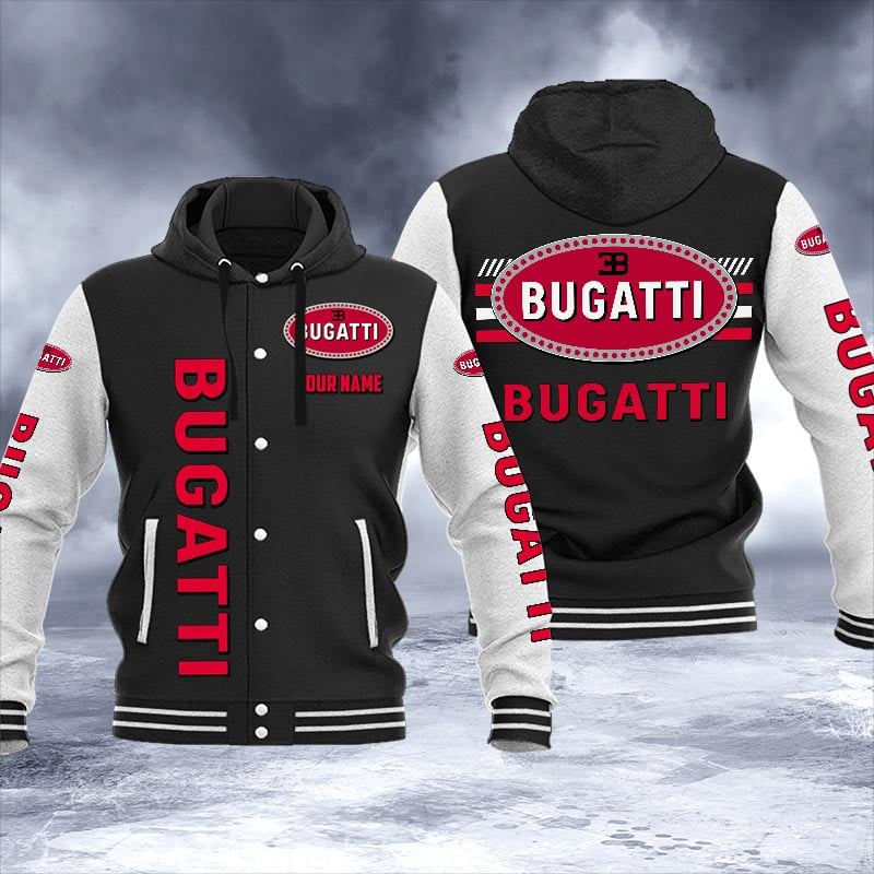Bugatti Personalized Hooded Baseball Jacket For Fans Black