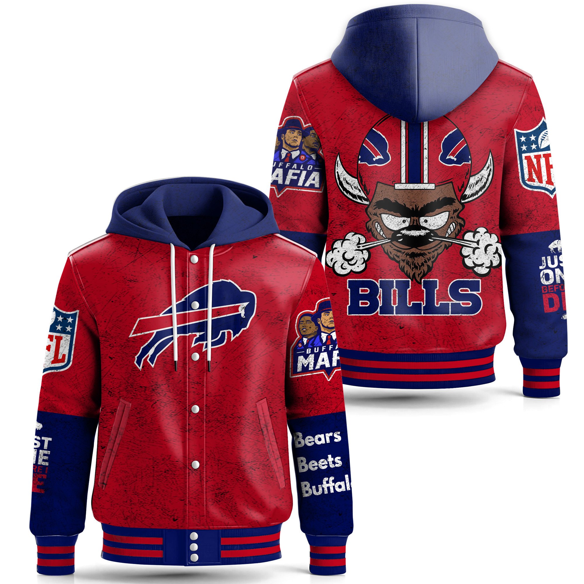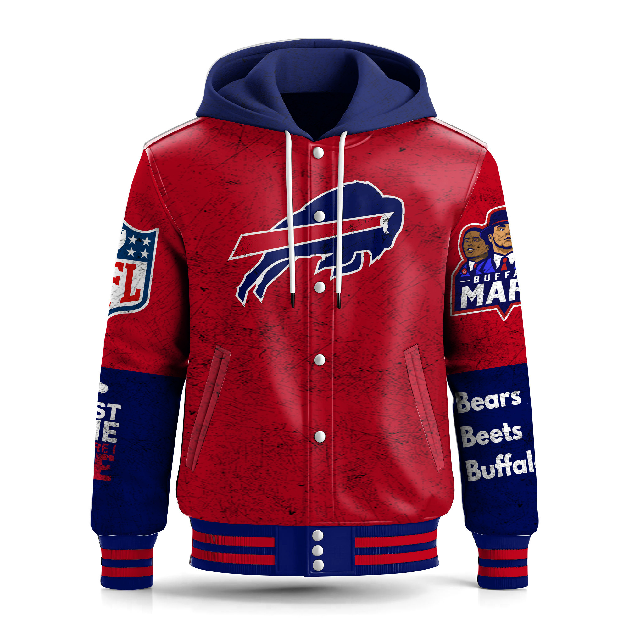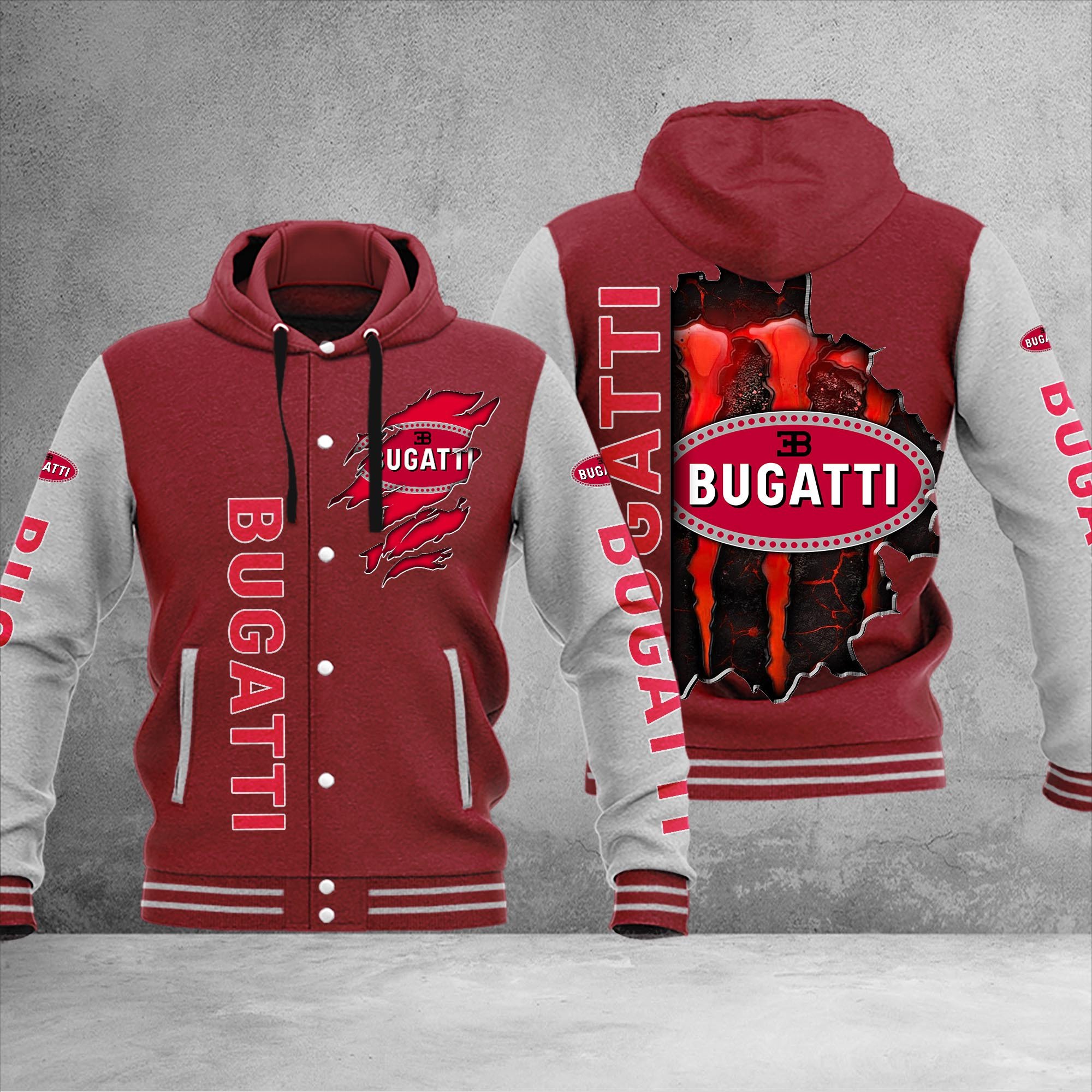 Bugatti Personalized Hooded Baseball Jacket For Fans Dark Red