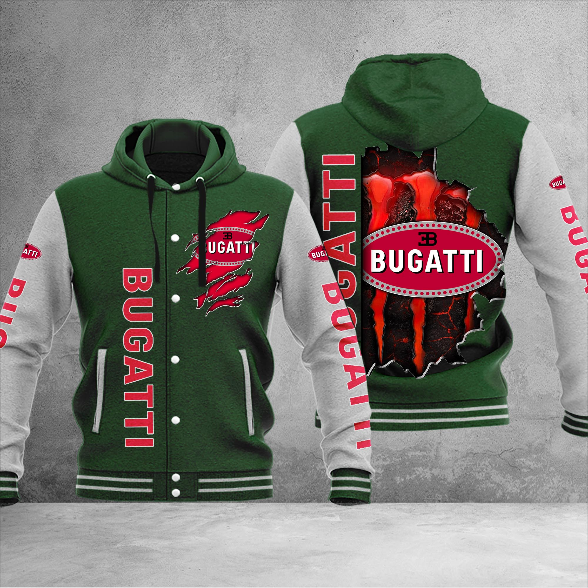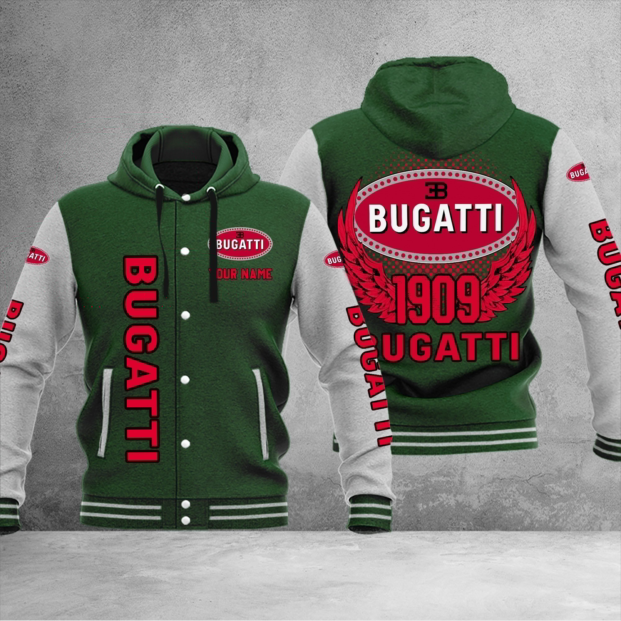 Bugatti Personalized Hooded Baseball Jacket For Fans Green