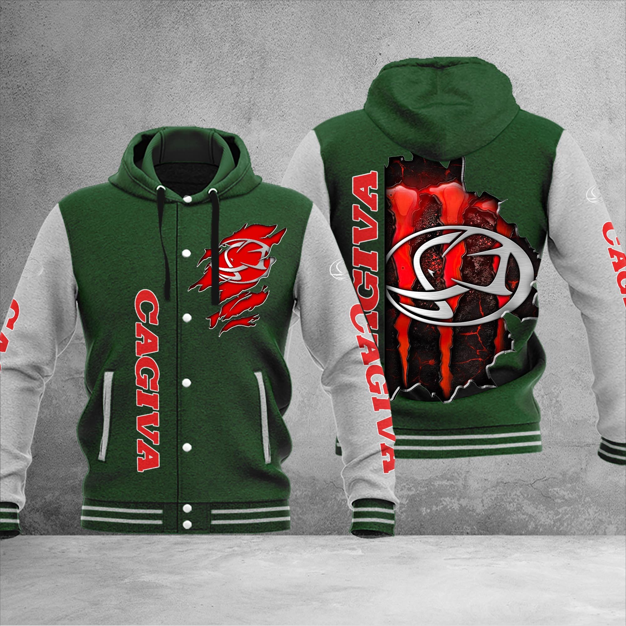 Cagiva Personalized Hooded Baseball Jacket For Moto Fans Green
