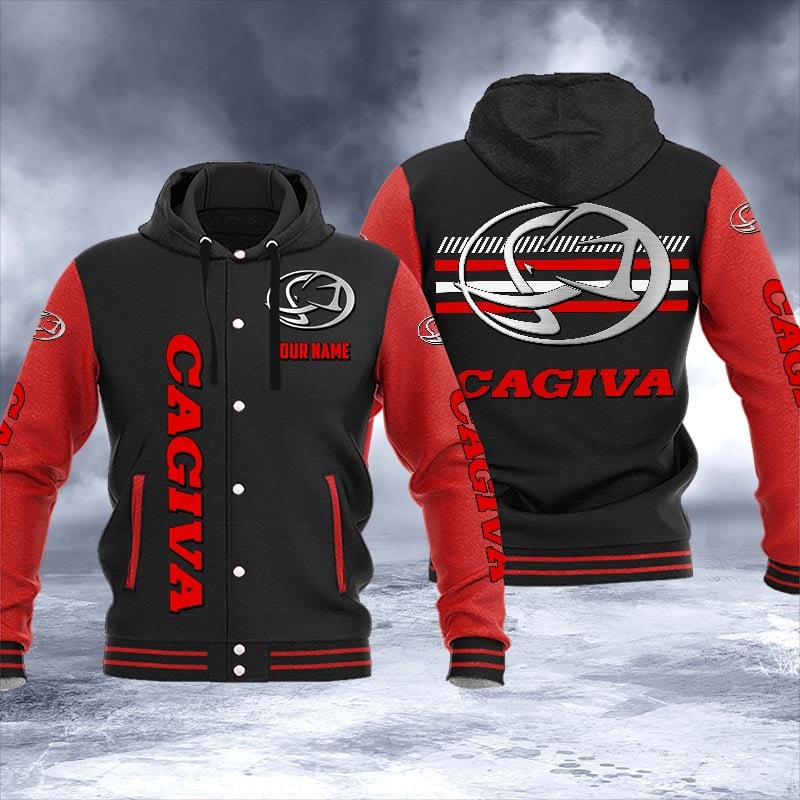 Cagiva Personalized Hooded Baseball Jacket For Fans Red Black