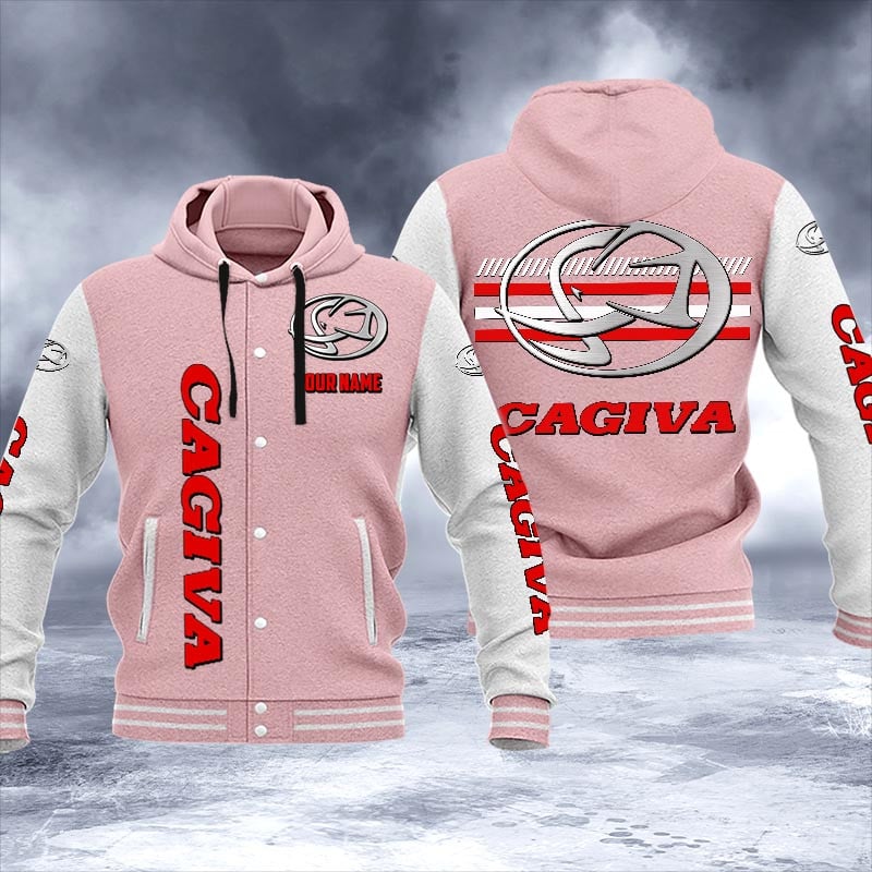 Cagiva Personalized Hooded Baseball Jacket For Fans Pink