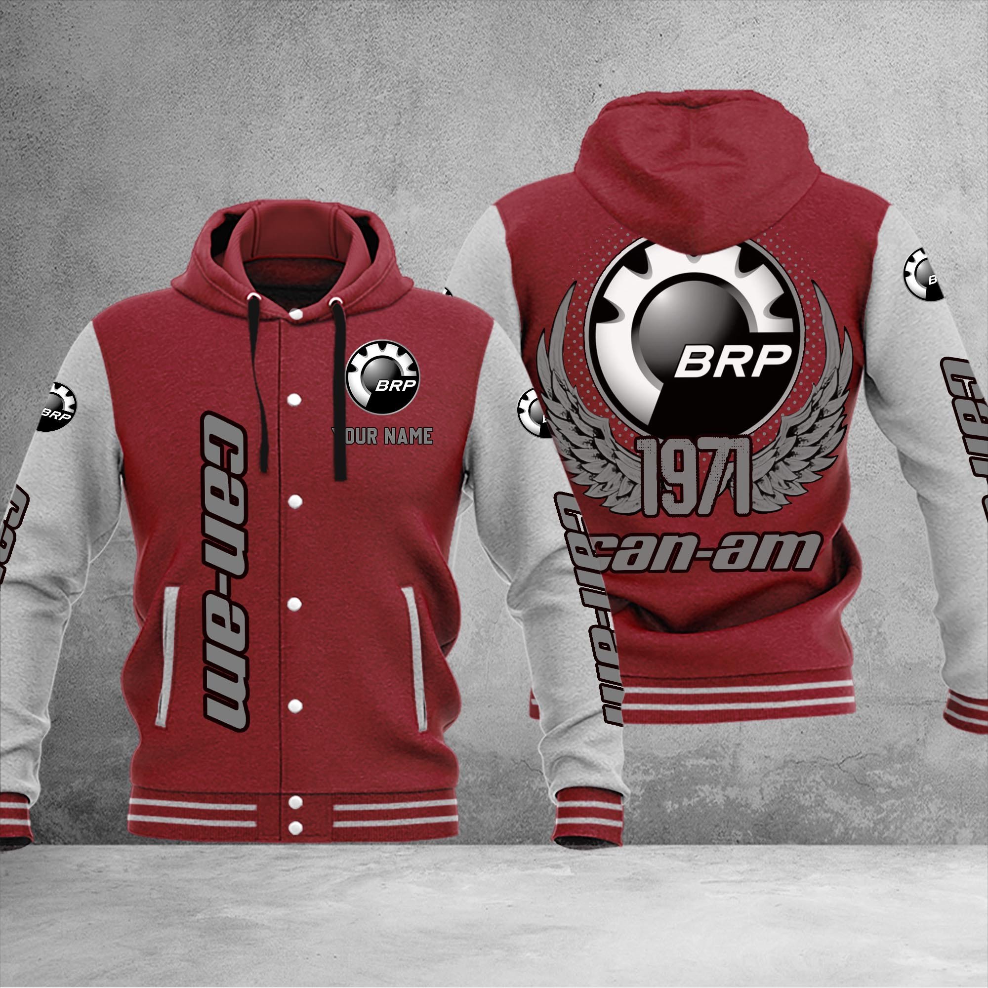Can-Am Custom Hooded Baseball Jacket For Fans Dark Red
