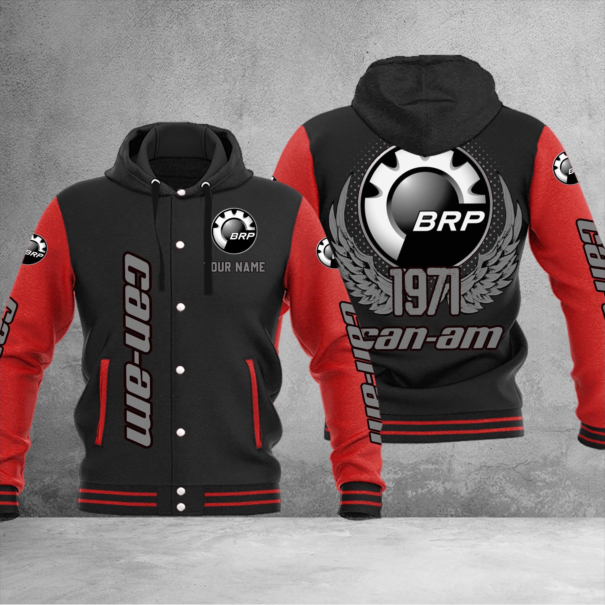 Can-Am Custom Hooded Baseball Jacket For Fans Red Black