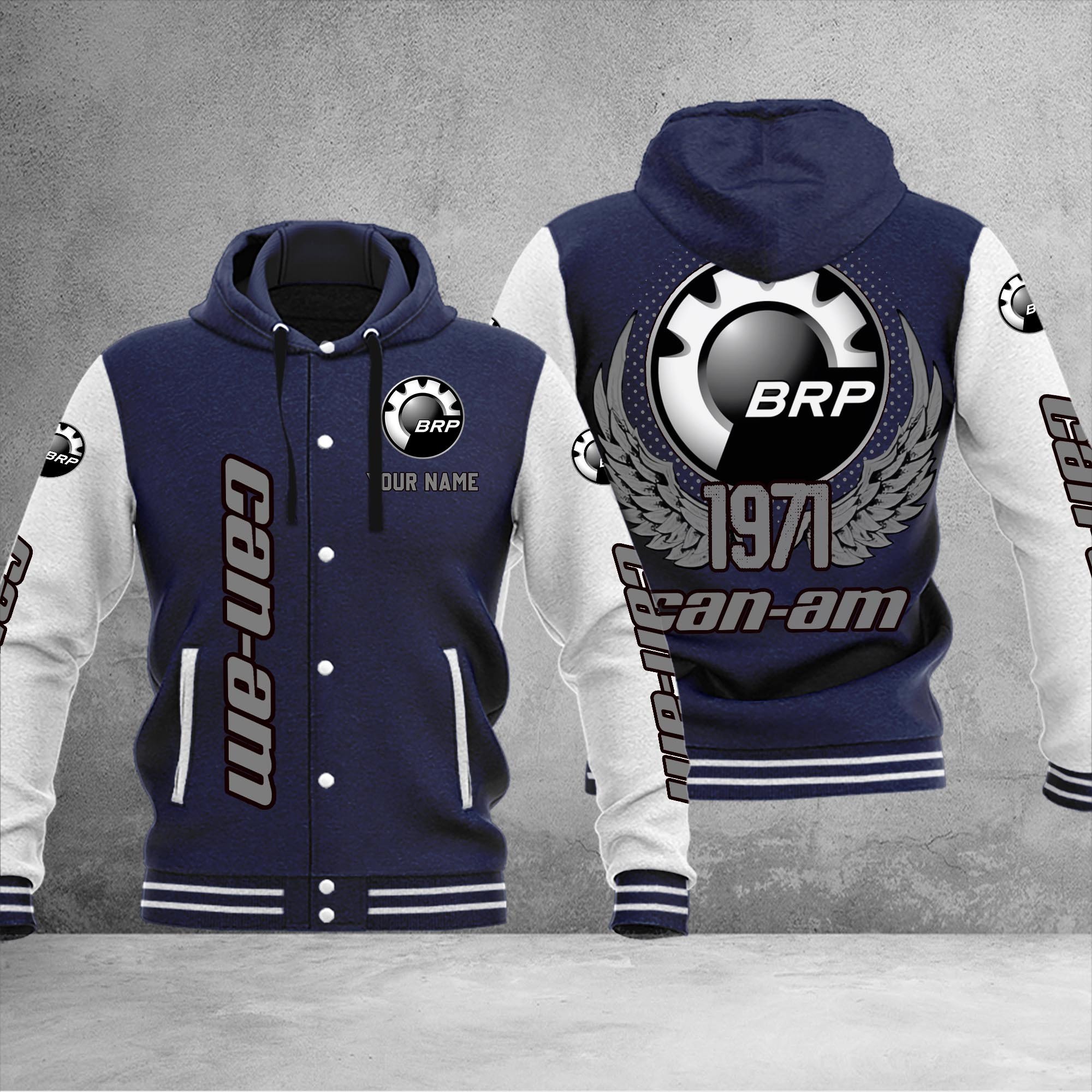 Can-Am Custom Hooded Baseball Jacket For Fans Navy