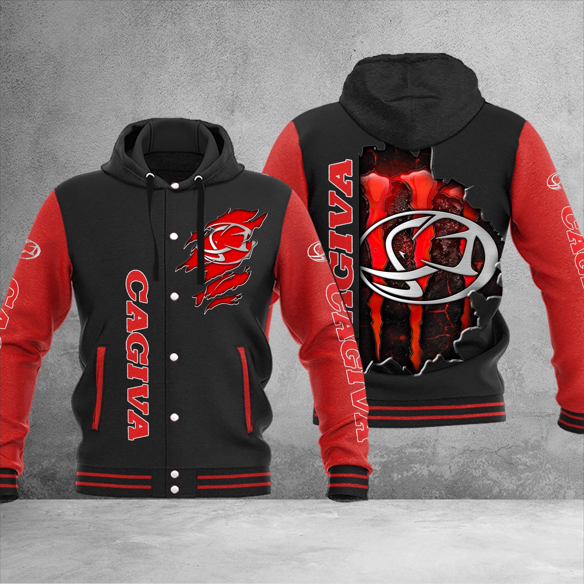 Cagiva Personalized Hooded Baseball Jacket For Moto Fans Red Black