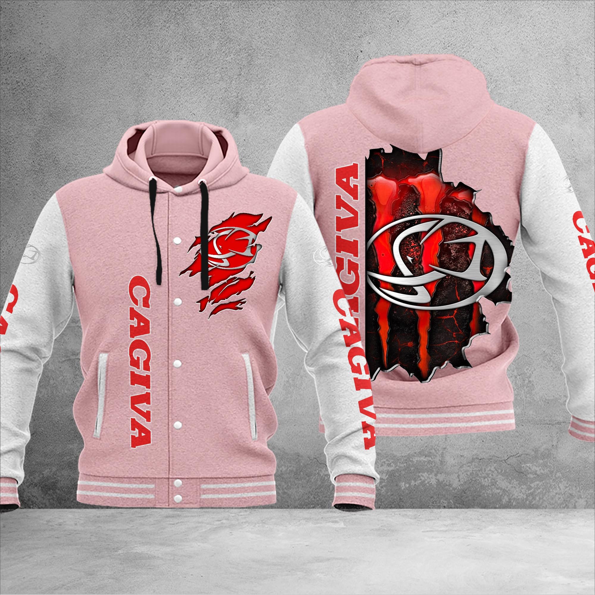 Cagiva Personalized Hooded Baseball Jacket For Moto Fans Pink