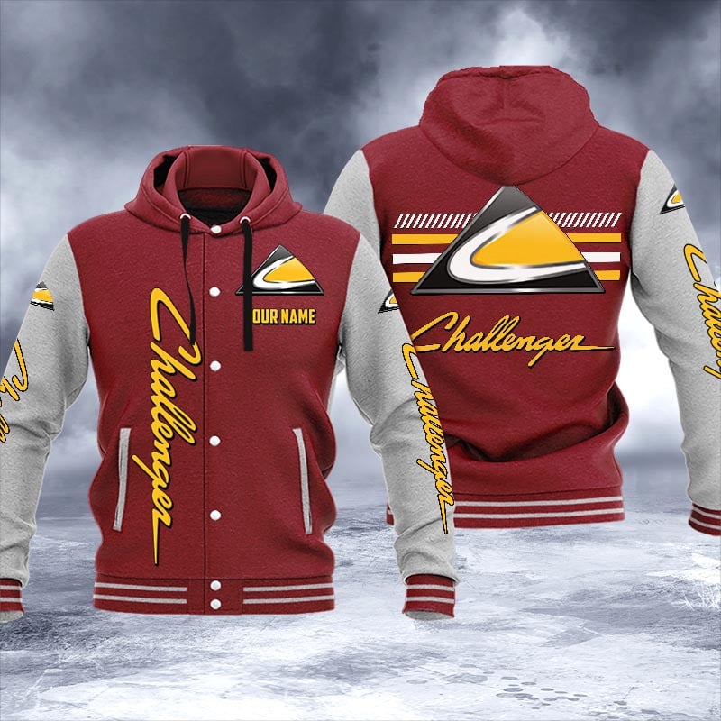 Challenger Personalized Hooded Baseball Jacket For Fans Dark Red