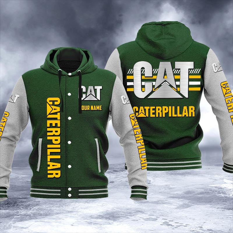 Caterpillar Personalized Hooded Baseball Jacket For Fans Green