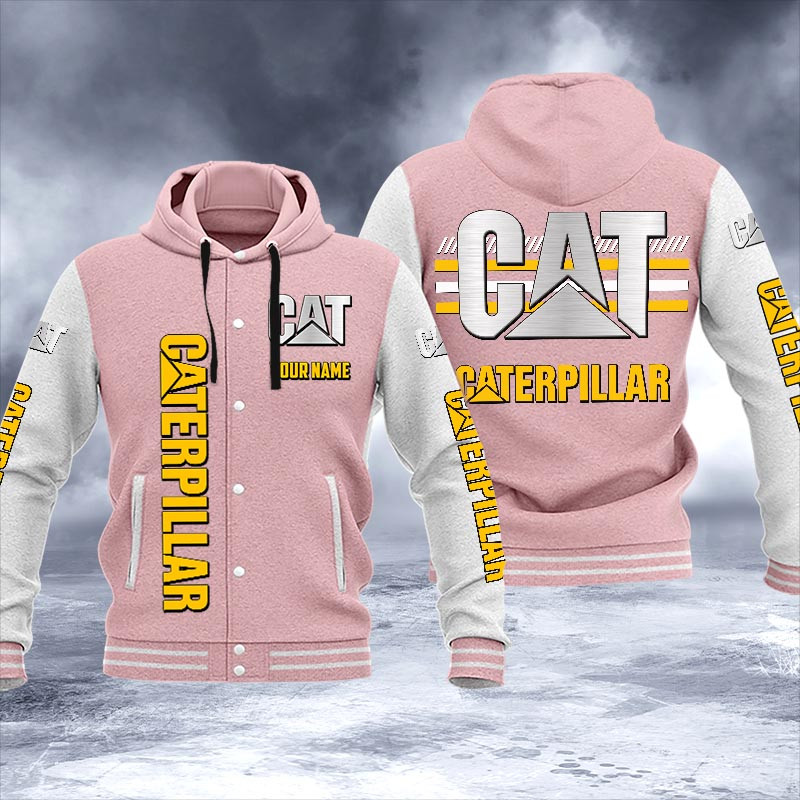 Caterpillar Personalized Hooded Baseball Jacket For Fans Pink