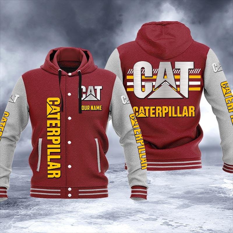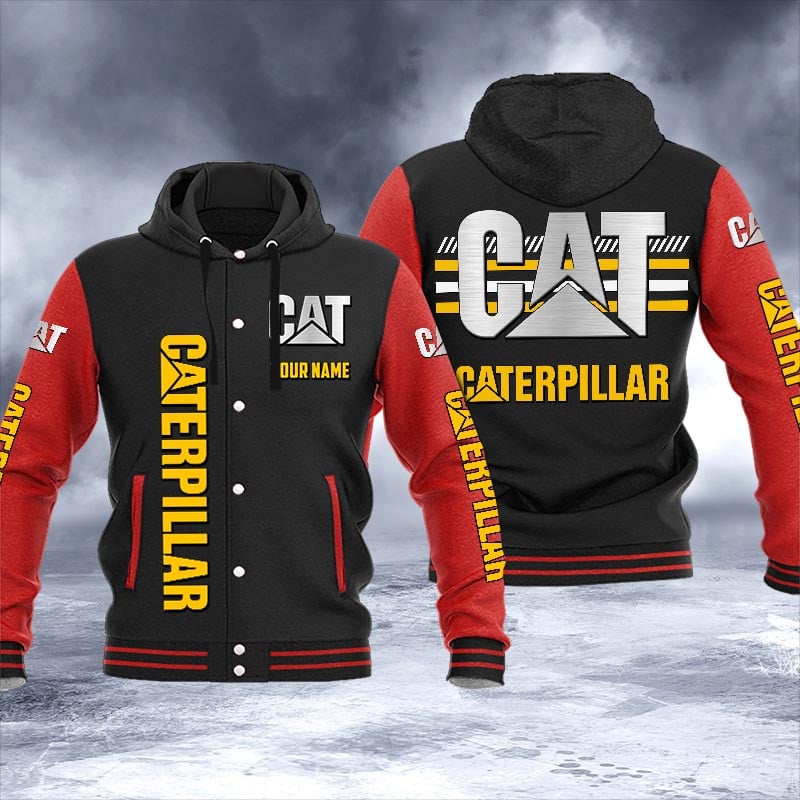 Caterpillar Personalized Hooded Baseball Jacket For Fans Red Black